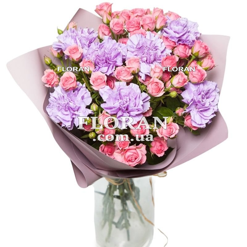 Букет из роз и гвоздик - код товару FL-1151. Вот чудный букет из роз и гвоздик: