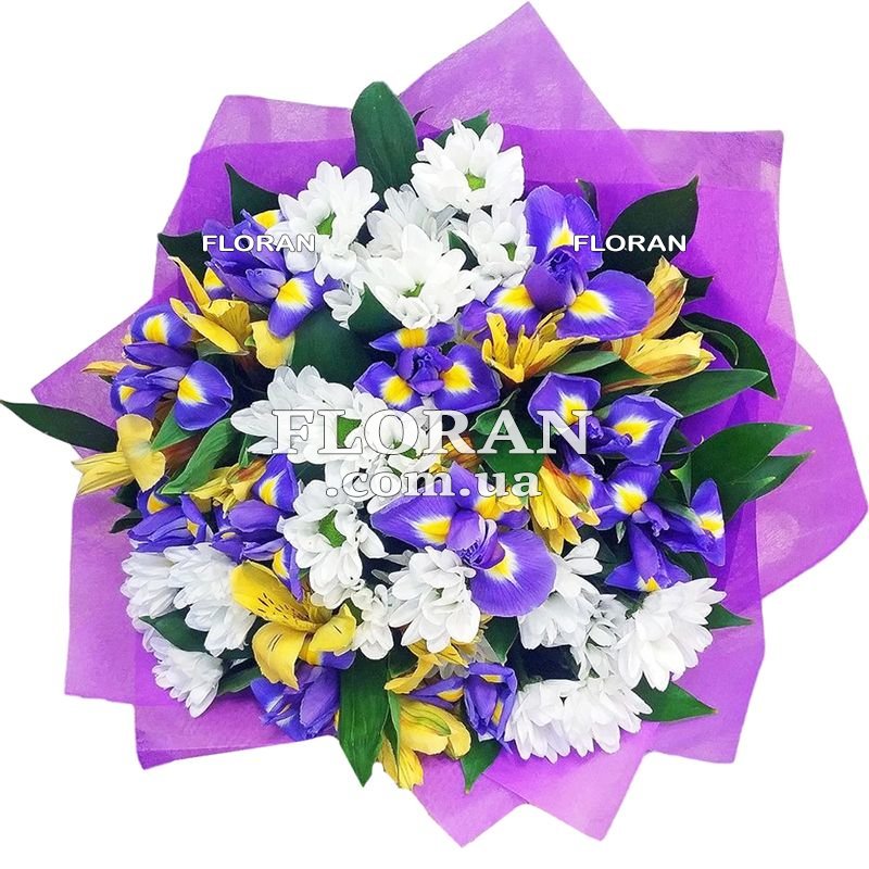Букет микс с ирисами - код товара FL-2497 - это разнообразное и яркое сочетание цветов, которые приносят в подарок радость, свежесть и изысканность. Белые хризантемы, желтые альстромерии и ирисы обладают своей уникальной символикой и красотой. Белые хризантемы символизируют чистоту и свет. Они также могут символизировать долговечность и бесконечность чувств. Даря белые хризантемы, вы выражаете свою привязанность и уважение. Желтые альстромерии добавляют к букету яркие и радостные нотки. Они символизируют радость и удовольствие, принося в подарок тепло и доброжелательность. Ирисы, в свою очередь, символизируют нежность и преданность. Они создают атмосферу изящества и гармонии. Сочетание ирисов с хризантемами и альстромериями придает букету баланс и разнообразие. Упаковка для букета помогает сохранить его свежесть и придать подарку завершенный вид. Это добавляет дополнительной элегантности и оформляет ваш подарок наилучшим образом. Такой букет подчеркивает радость и яркость в ваших отношениях. Он создает атмосферу праздника и привносит яркие моменты в вашу жизнь. Наш магазин гарантирует надежную доставку букета в любой город Украины и в любое место. Мы заботимся о том, чтобы ваш подарок достиг получателя в наилучшем состоянии, сохраняя свежесть и красоту цветов. Букет микс с 4 белыми хризантемами, 4 желтыми альстромериями и 11 ирисами - это проявление радости и разнообразия. Этот букет приносит незабываемые моменты и делает день особенным для вашего получателя.