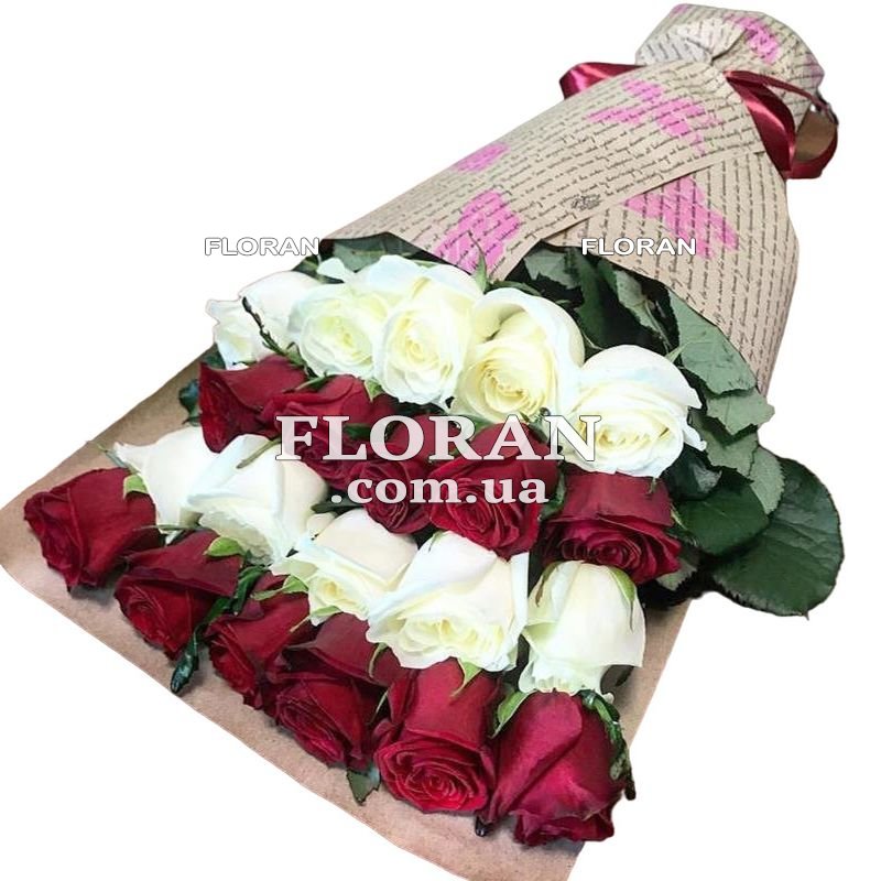 21 красная и белая роза, упаковка