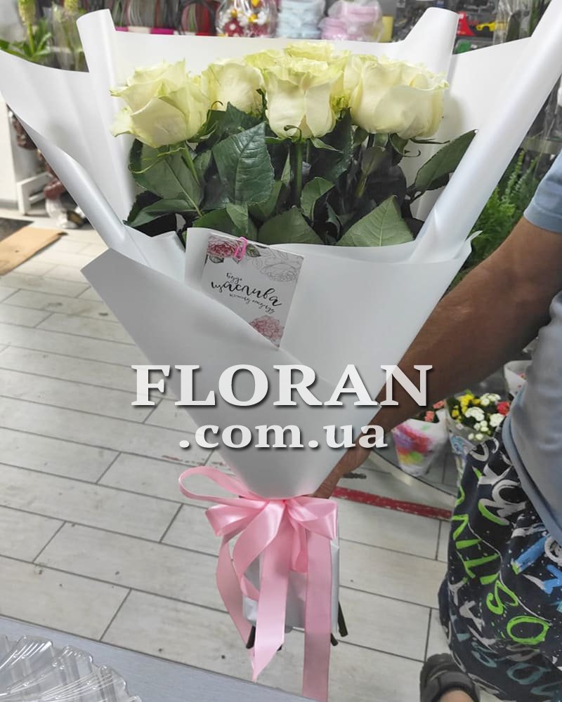 Букет роз маме - код товара FL-1651 - замечательный подарок для вашей мамы. Отправьте ей свою любовь и благодарность с помощью этой уникальной композиции из 9 белых импортных роз с лентой. Каждая роза символизирует вашу нежность, заботу и уважение к вашей самой дорогой женщине. Белые розы - это символ чистоты, нежности и душевной гармонии. Этот букет станет прекрасным подарком для вашей мамы на любой особенный день: День Рождения, День Матери, Юбилей или просто чтобы сказать ей, как она вам дорога. Наши розы высокого качества и имеют долгий срок службы, что позволит вашей маме долго наслаждаться красотой букета. Мы гарантируем свежесть и безупречное оформление каждой розы в этом букете. Чтобы заказать этот нежный букет роз для вашей мамы, оформите заявку на нашем сайте. Мы с удовольствием доставим его по указанному адресу и сделаем ваш подарок особенным и запоминающимся для вашей мамы. Она обязательно оценит вашу заботу и любовь, выраженные в этом прекрасном букете.