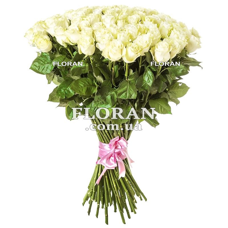 99 белых импортных роз, лента или упаковка