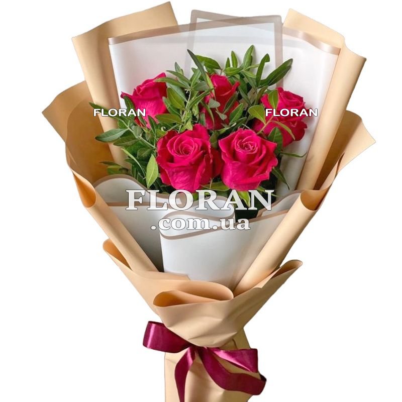 Букет роз с зеленью - код товара FL-1738 - великолепная композиция, которая состоит из 5 розовых импортных роз, окутанных нежной зеленью и аккуратно упакованных. Каждая роза в этом букете символизирует вашу нежность и заботу, выражая ваше искреннее внимание к близкому человеку. Розовый цвет розы говорит о вашей глубокой привязанности и благодарности, она подчеркивает ваше желание подарить радость и уют. Зелень, сопровождающая эти красивые розы, добавляет свежести и гармонии в композицию, подчеркивая её естественную красоту. Этот букет роз с зеленью говорит о ваших наилучших пожеланиях и готовности поддержать и оберегать вашего близкого человека. Он передает теплоту ваших чувств и ярких эмоций, олицетворяя прекрасную связь между вами и получателем этого прекрасного подарка. Пусть этот букет станет символом вашего близкого взаимопонимания и поддержки, напоминанием о том, что вы всегда рядом и готовы подарить свою заботу и любовь. Пусть он принесет радость и счастье, подчеркнет особенность вашей связи и добавит в вашу жизнь ярких моментов, наполненных теплотой и гармонией.