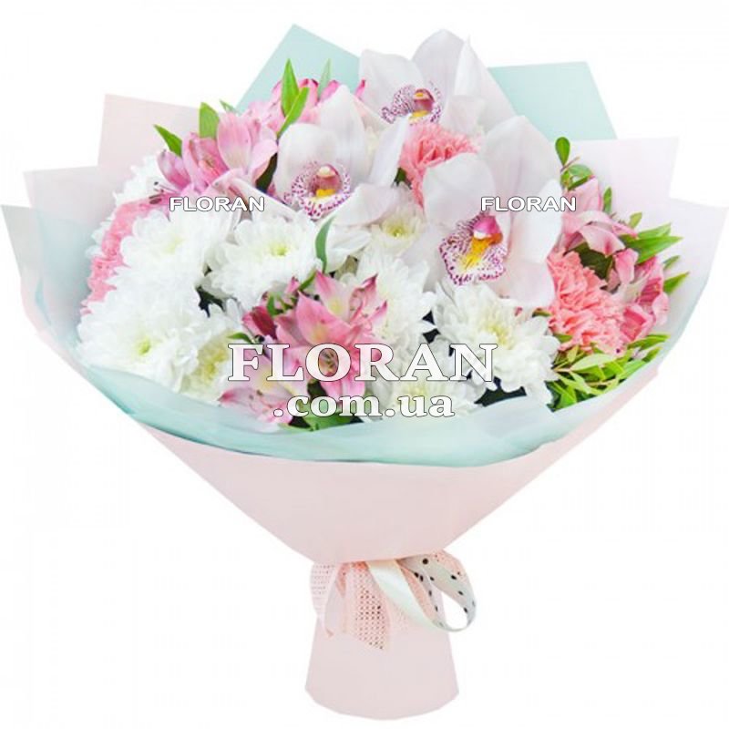 Вот состав этого особенного букета светлых цветов:
