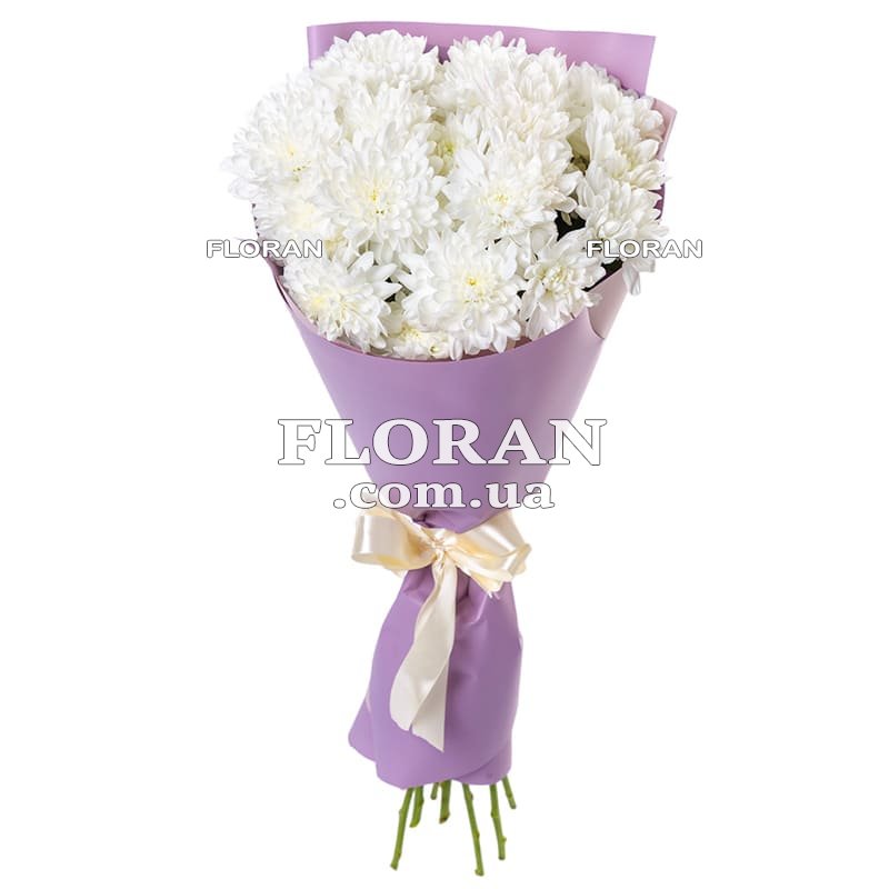 Букетик хризантем - код товара FL-853. Букетик из 7 белых хризантем - это нежное и изящное проявление простоты и элегантности. Белый цвет хризантем символизирует чистоту, нежность и непорочность. Такой букетик будет отличным подарком для выражения уважения, благодарности или просто чтобы подарить маленькую радость близкому человеку. Белые хризантемы обладают изысканной красотой и придают атмосферу нежности и спокойствия. Они могут символизировать чистоту души, мир и гармонию. Белый букетик хризантем прекрасно подойдет для особых случаев, таких как свадьба, юбилей или другие торжественные мероприятия.