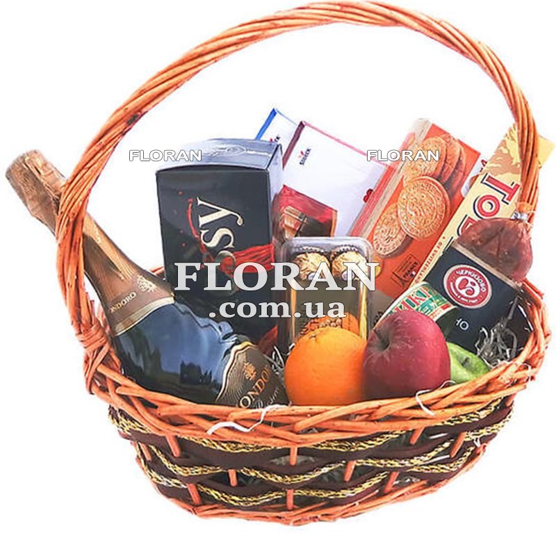 Элитная подарочная корзина - код товара FL-1946 - это непревзойденный выбор для тех, кто ценит изысканный вкус и высокое качество. В ней собраны только самые изысканные продукты и напитки, которые станут истинным удовольствием для получателя. Конфеты Ferrero Rocher и Merci подарят нежные сладкие моменты радости. А шоколад Toblerone или другие импортные шоколадные деликатесы добавят нотки изысканности и роскоши. В корзине также представлены ароматное печенье, свежие яблоки и апельсины, которые принесут свежесть и полезность в этот прекрасный набор. Для ценителей изысканных вкусов, мы добавили сырокопченую колбасу и нежную икру лососевую. А для торжественных моментов и праздничных встреч, подарочная корзина содержит коньяк Hennessy VS и игристое вино Mondoro. Этот прекрасный набор станет идеальным подарком для руководителя или партнера. Его изысканный состав выразит ваше почтение и признание, а также подчеркнет ваши теплые и дружеские отношения. Пусть элитная подарочная корзина станет символом вашего внимания и заботы, и принесет радость и удовольствие тому, кто ее получит. И помните, что мы рады доставить этот изысканный подарок в любой город Украины, чтобы ваше внимание и признание долетело даже на большое расстояние.