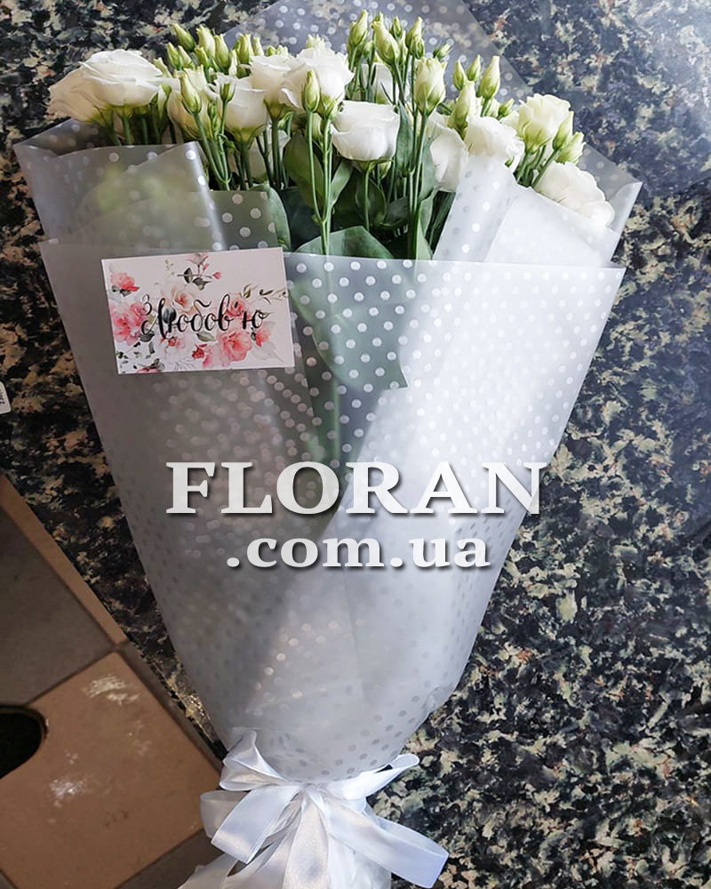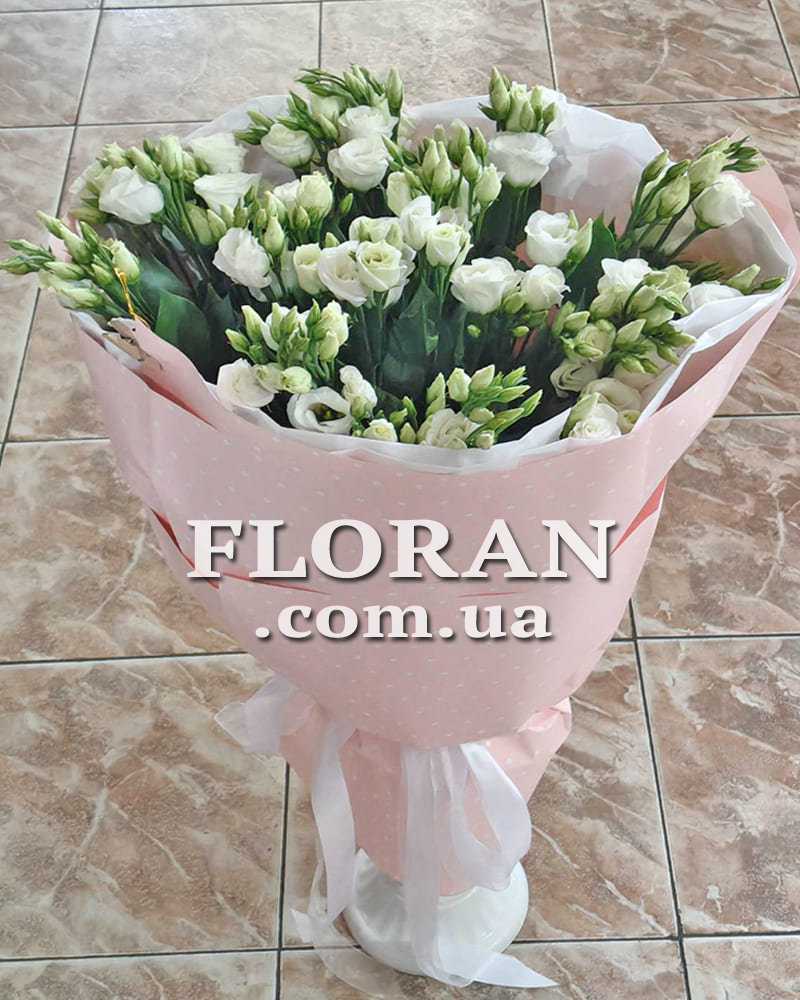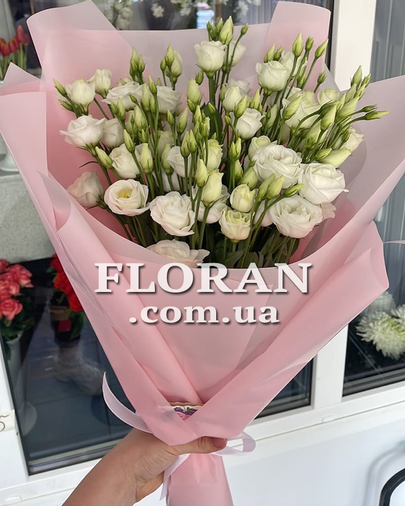 Эустома белая - код товара FL-978. Белая эустома - это великолепный выбор для создания нежного и изысканного букета. Белый цвет эустомы символизирует чистоту, свежесть и невинность, придавая букету особую элегантность и изящество. Букет из 11 белых эустом будет выглядеть великолепно и привлекательно. Эустома белая обладает нежной красотой и мягкостью, что делает ее прекрасным выбором для подарка любимому человеку или для особых событий и торжеств.