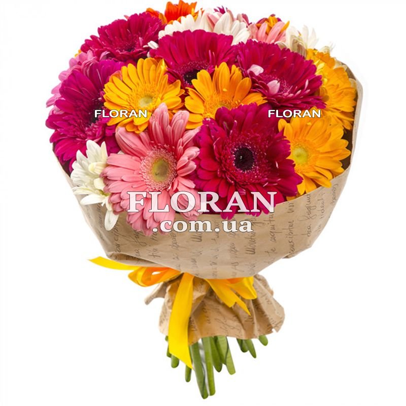 Гербери букет - код товара FL-1567 - это настоящий цветочный праздник, который заполняет комнату яркими и красочными оттенками. Герберы, известные своей крупной головкой и яркими лепестками, создают неповторимое сочетание цветов и привносят радость в каждый момент. В этом букете вы найдете герберы самых разных оттенков: от ослепительно-красных и ярко-оранжевых, до нежно-розовых и ярко-желтых. Каждый цвет символизирует свою эмоцию и чувство, такие как любовь, радость, восхищение, дружба и благодарность. Букет из 29 разноцветных гербер - это идеальный подарок для любого повода. Он станет прекрасным приветствием на день рождения, юбилей, свадьбу, выпускной или просто для того, чтобы подарить радость близкому человеку. Этот букет выражает желание передать положительные эмоции и пожелания счастья. Упаковка, в которую оформлен этот букет, добавляет ему завершенности и элегантности. Она защищает цветы и подчеркивает их красоту. Вы можете выбрать классическую упаковку из целлофана или стильную упаковку из крафт-бумаги или ткани. Красивый бант или лента завязаны вокруг букета, придают ему особую изящность. Букет из 29 разноцветных гербер - это не только прекрасное украшение для любого интерьера, но и символ радости, красоты и праздника. Он напоминает нам о прекрасных моментах жизни и о том, как важно делиться положительными эмоциями с нашими близкими. Подарите этот герберовый букет своим друзьям, родным или коллегам, и подарите им кусочек счастья и радости. Он станет прекрасным способом выразить свою любовь, благодарность или поздравить с особым событием. Ведь герберы - это не только красивые цветы, но и символ дружбы, уважения и радости жизни.