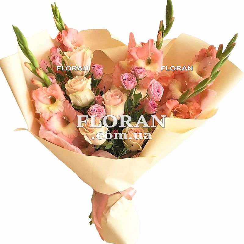 Гладиолусы и розы в букете - код товара FL-1911 - это настоящее произведение цветочного искусства, сочетающее нежность и элегантность. В этом букете прекрасно гармонируют 5 кремовых роз, 4 розовых гладиолуса и 4 розовых кустовых розы, упакованные с заботой и вниманием. Кремовые розы символизируют чистоту, доверие и уважение. Их нежные оттенки прекрасно дополняют розовые гладиолусы, которые являются символом нежности, женственности и красоты. Кустовые розы, в свою очередь, добавляют букету изысканности и изящества. Этот букет идеально подходит для различных случаев и праздников. Он будет отличным подарком для дня рождения, юбилея, свадьбы или романтического свидания. Также он может быть проявлением вашего внимания и заботы к тем, кто для вас особенно дорог. Закажите этот прекрасный букет из гладиолусов и роз на нашем сайте прямо сейчас, и мы сделаем его с любовью и профессионализмом. Каждый цветок будет свежим и красивым, чтобы подарить радость и улыбку тому, кто его получит. Мы предлагаем доставку букета гладиолусов и роз в любую точку города. Надежные курьеры привезут ваш подарок к указанному времени, чтобы вы смогли порадовать своих близких и родных. Подарите этот восхитительный букет, чтобы передать самые искренние чувства и создать незабываемые впечатления.