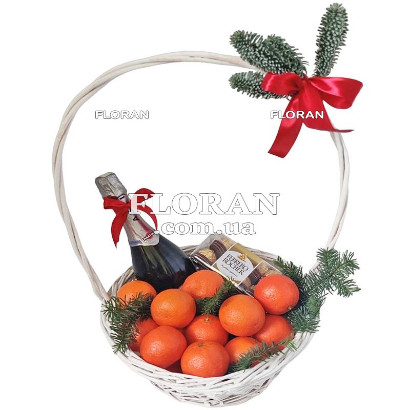 мандарины 2 кг, конфеты Ferrero Rocher 200 г, шампанское Martini Asti (в подарок)