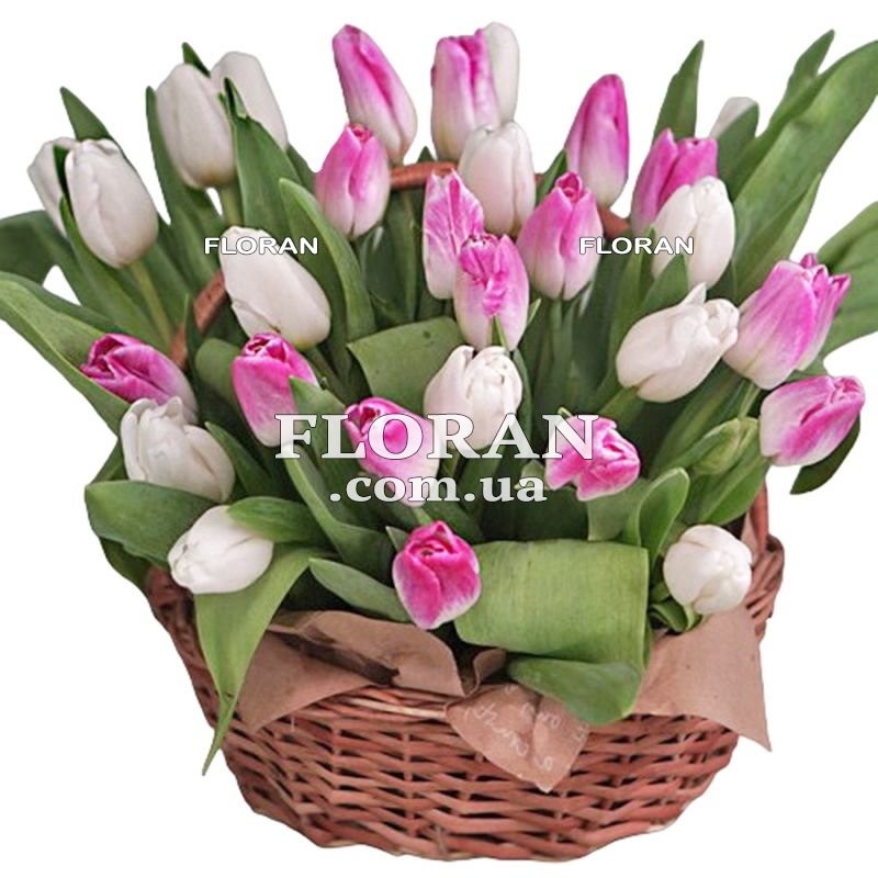 Корзинка тюльпанов - код товара FL-2464 - это чудесный подарок, который символизирует нежность и элегантность. Этот букет состоит из 35 тюльпанов, включая как белые, так и розовые цветы, что придает ему особую гармонию и красоту. Тюльпаны - это цветы, которые ассоциируются с весной и новым началом. Белые тюльпаны часто символизируют чистоту и невинность, а розовые - нежные чувства и женственность. Их сочетание в этой корзинке создает впечатление утонченности и любви. Корзина, в которой представлен этот букет, добавляет удобства при транспортировке и презентации цветов. Такой подарок можно отправить, не беспокоясь о поиске вазы, и он сразу придет в готовом виде, готовый подарить радость. Этот букет подходит для множества случаев, будь то поздравление с днем рождения, юбилеем, свадьбой или просто как жест нежности и заботы к близкому человеку. Он выражает теплоту и заботу, и его получение наверняка вызовет радость и улыбку на лице того, кому он предназначен.