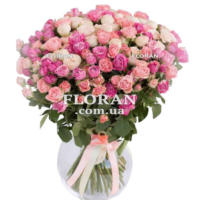 Красивый букет из пионовидных роз - код товара FL-649. Букет из 51 пионовидной кустовой розы - это действительно впечатляющий и очень красивый подарок. Каждая роза в этом букете - это настоящее произведение природы, с ее пышными лепестками и обильной текстурой. Кремовые и розовые оттенки роз будут гармонично смотреться в любом интерьере, придавая ему изысканность и утонченность. Такой букет подойдет для любого торжества - от юбилея и годовщины отношений до Дня Рождения и просто в знак любви и внимания. Получив такой подарок, человек почувствует всю вашу заботу и внимание, и будет долго наслаждаться красотой этих прекрасных цветов. Кроме того, пионовидные кустовые розы являются долговечными цветами, и их красота сохранится на долгое время, напоминая о вашем внимании и заботе.