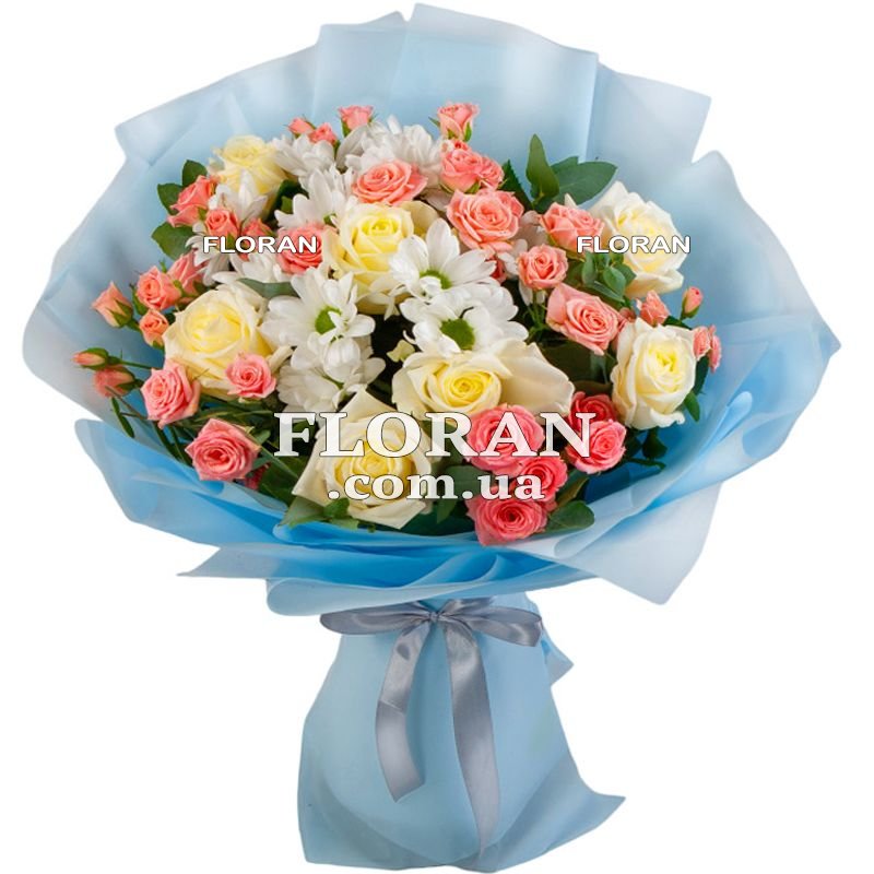Красивый букет любимой девушке - код товару FL-1246. Этот красивый букет – идеальный способ выразить свою любовь и заботу к любимой девушке. В его состав входят 7 белых роз, 8 розовых кустовых роз, 2 белые хризантемы и упаковка, которая добавит завершенности и элегантности этому подарку. Белые розы – это символ чистоты, нежности и искренней любви. Они являются классическим выбором для выражения глубоких чувств и уникального восхищения к девушке. Розовые кустовые розы – символизируют нежность, романтику и привязанность. Они подчеркнут вашу нежную и романтическую сторону отношений, показав девушке, как она особенна и важна для вас. Белые хризантемы – это символ свежести, чистоты и вечной любви. Они дополнят композицию букета и придадут ему дополнительную яркость и текстуру. Упаковка букета создаст завершенный вид и подчеркнет его красоту. Вы можете выбрать упаковку, которая отражает стиль и предпочтения вашей любимой девушки. Будь то элегантная обертка или роскошный бант, упаковка добавит дополнительный шарм и роскошь к вашему подарку. Этот красивый букет с белыми и розовыми розами, белыми хризантемами и элегантной упаковкой является идеальным проявлением вашей любви и восхищения. Он покажет вашу заботу и желание сделать этот день особенным для вашей любимой девушки. Этот букет будет наполнен нежностью и романтикой, и станет прекрасным символом вашей искренней и прочной связи.