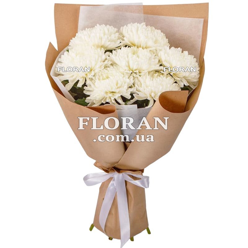 Не упустите возможность подарить этот прекрасный букет из 7 крупных белых хризантем в крафт-упаковке. Он станет великолепным символом вашей заботы, любви и внимания к получателю.