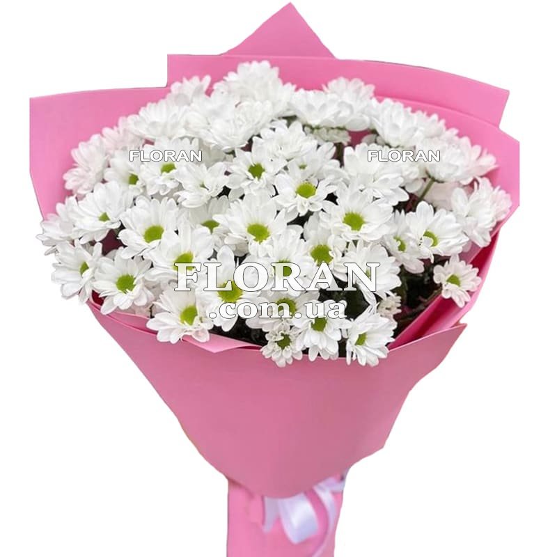 Кустовые ромашки - код товара FL-840. Кустовые ромашки, также известные как ромашковые хризантемы, - это прекрасные цветы, которые обладают яркой и радостной энергией. Их крупные и округлые цветки, напоминающие классическую форму ромашки, привлекают взгляды и придают букету особый шарм.