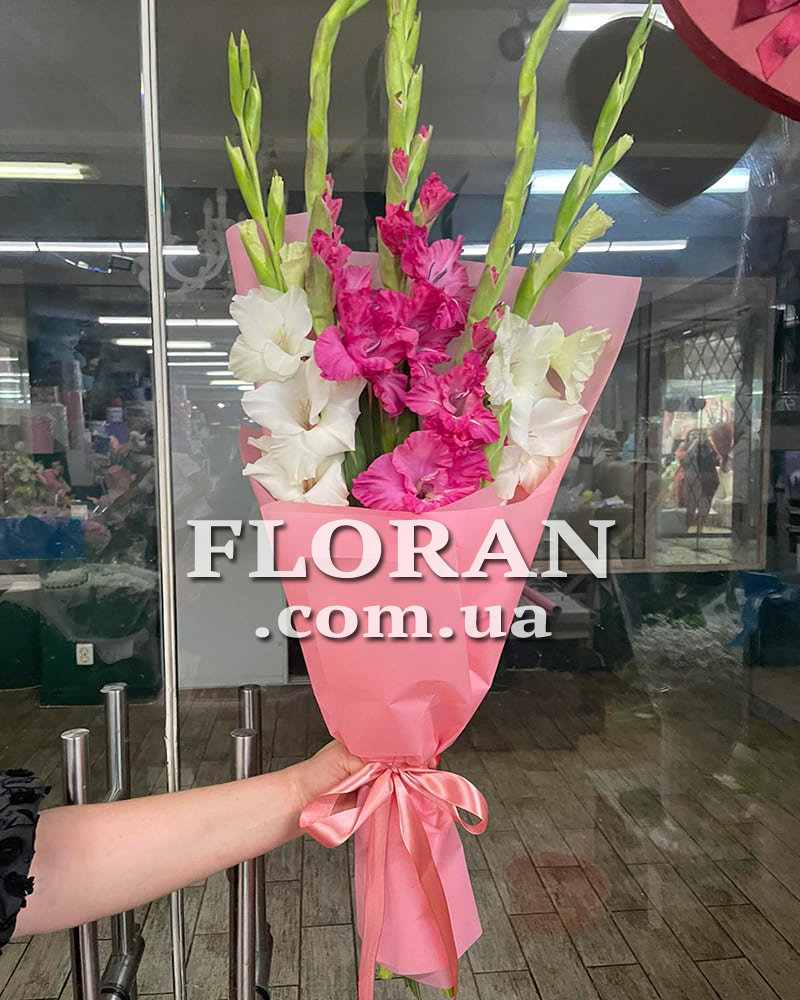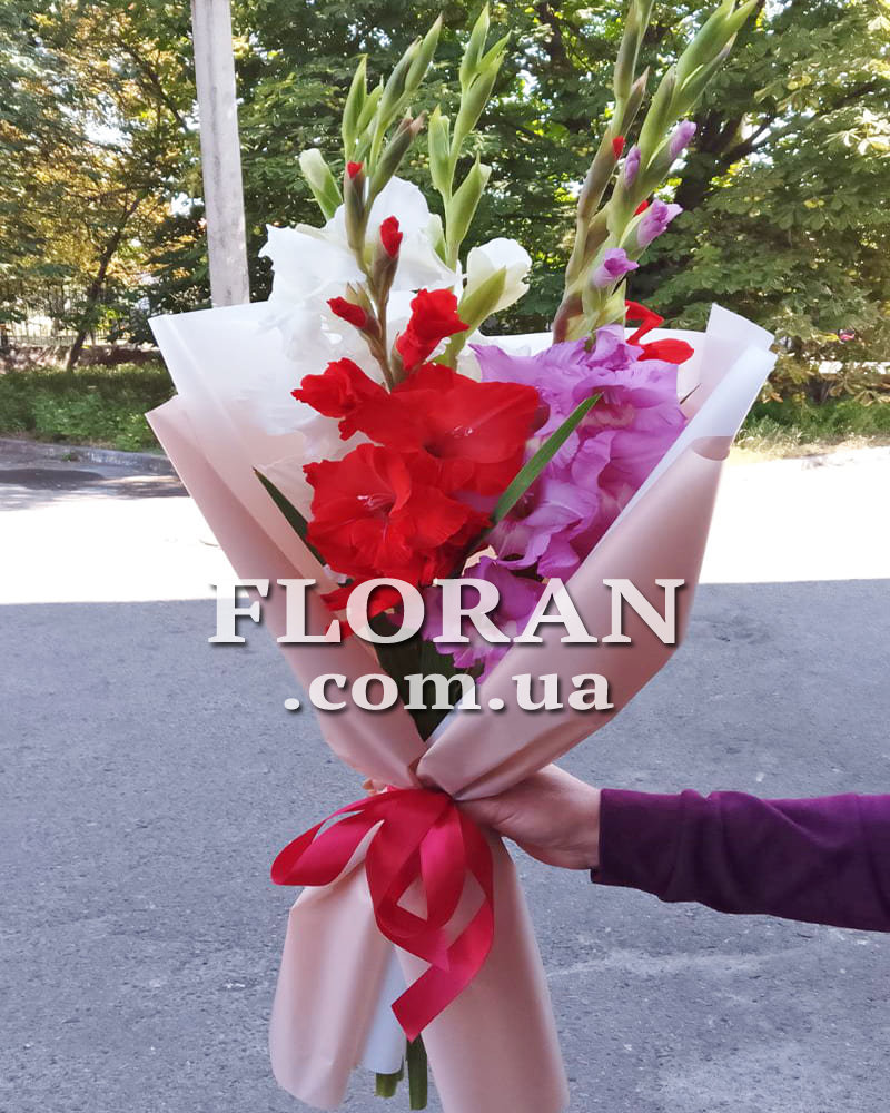 Маленький букет гладиолусов - код товару FL-1477. Этот букет будет ярким и уникальным подарком для любого случая. Гладиолусы - цветы с изящными цветками, которые отличаются своей яркостью и разнообразием оттенков. В нашем букете вы найдете гладиолусы разных цветов, создающие прекрасную гармонию и комбинацию. Каждый гладиолус в этом букете будет радовать вас своей индивидуальностью и красотой. Маленький размер этого букета делает его удобным для подарка и переноски. Он идеально подходит для тех, кто ценит компактность и элегантность. Упаковка, в которую оформлен букет, добавляет красоты и законченности композиции, делая его готовым для непосредственной передачи и вручения. Букет из 5 разноцветных гладиолусов с упаковкой - это прекрасный способ выразить свою любовь, благодарность или поздравления. Он будет подходящим презентом для дня рождения, юбилея, свадьбы или просто для того, чтобы подарить радость близкому человеку. Не упустите возможность порадовать своих близких этим уникальным маленьким букетом гладиолусов. Он станет прекрасным символом вашей заботы, любви и внимания к особому человеку в вашей жизни.