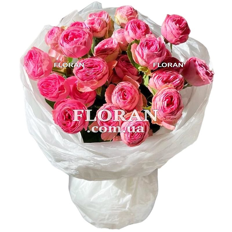Маленький букет из пионовидных роз - код товара FL-1402. Маленький букет из 7 розовых кустовых пионовидных роз - идеальный знак внимания и нежного подарок для вашей дочери, племянницы или маленькой девочки. Этот букет пробуждает радость и восхищение среди детского воображения и создает магическую атмосферу. Розовые пионовидные розы символизируют нежность, детство и невинность. Их мягкие и пышные лепестки напоминают о нежности и заботе. Этот букет будет прекрасным подарком на День рождения, праздник или просто как знак любви и внимания. Красиво упакованный в упаковку, этот маленький букет станет непременным акцентом в специальном моменте. Его яркие и нежные цвета привлекут внимание, а аромат цветов заполнил комнату нежностью и свежестью. Не важно, дарите ли вы этот букет своей дочери, племяннице или маленькой девочке, он будет олицетворять вашу заботу и любовь к ним. Пусть каждая роза напоминает им, как они особенны и ценны в вашей жизни. Выбрав маленький букет из пионовидных роз для детского получателя, вы создадите момент волшебства и радости. Этот подарок подчеркнет их нежность и привлекательность, а также покажет, что вы обращаете внимание на их интересы и предпочтения. Дарите этот маленький букет пионовидных роз, чтобы увидеть улыбку на лице вашей дочери, племянницы или маленькой девочки. Он будет прекрасным сюрпризом, наполненным любовью и теплотой, и оставит незабываемые впечатления в их сердцах.