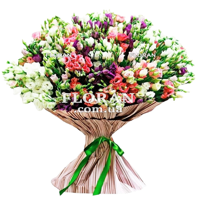 Микс эустомы - код товара FL-1013. Букет из 85 разноцветных эустом является истинным произведением цветочного искусства. Микс эустомы включает в себя разнообразные оттенки и оттенки, создавая яркую и живую композицию. Этот букет будет идеальным подарком для вашей любимой, мамы или сестры, ведь он выражает радость, красоту и разнообразие цветов. Он станет замечательным символом вашей заботы и любви.