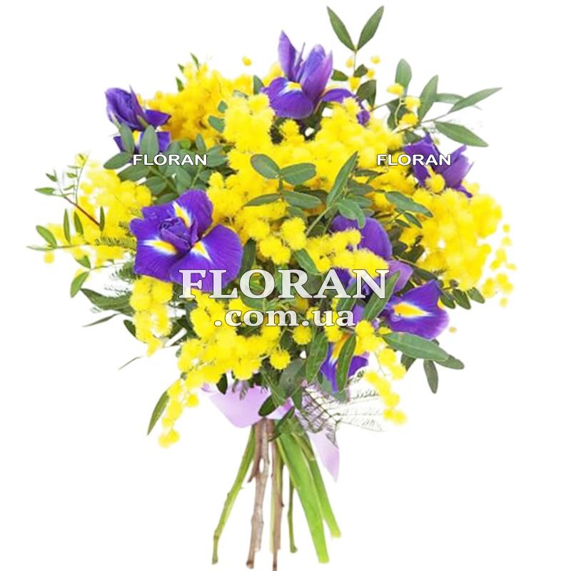 Мимоза и ирисы в букете
