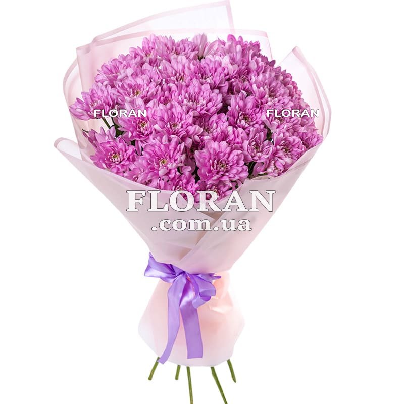 Небольшой букет из хризантем - код товара FL-880. Небольшой букет из хризантем, состоящий из 7 розовых хризантем, идеально подойдет для создания нежной и романтичной атмосферы. Этот компактный и изящный букет привлечет внимание своей простотой и одновременно изысканностью. Розовые хризантемы символизируют любовь, нежность и красоту. Они являются отличным выбором для выражения нежных чувств и дарения улыбки близкому человеку. Розовый цвет также ассоциируется с гармонией, умиротворением и нежностью, что делает этот букет идеальным подарком для любого случая. Небольшой размер букета позволяет легко поместить его в руку или в небольшую вазу. Вы можете подарить этот букет в качестве комплимента, дополнения к другому подарку или просто чтобы поднять настроение и показать внимание и заботу. Пусть этот небольшой букет из 7 розовых хризантем станет нежным и красивым символом вашей любви, заботы и внимания к особенному человеку. Его прекрасная красота и аромат заполнят пространство свежестью и романтикой.