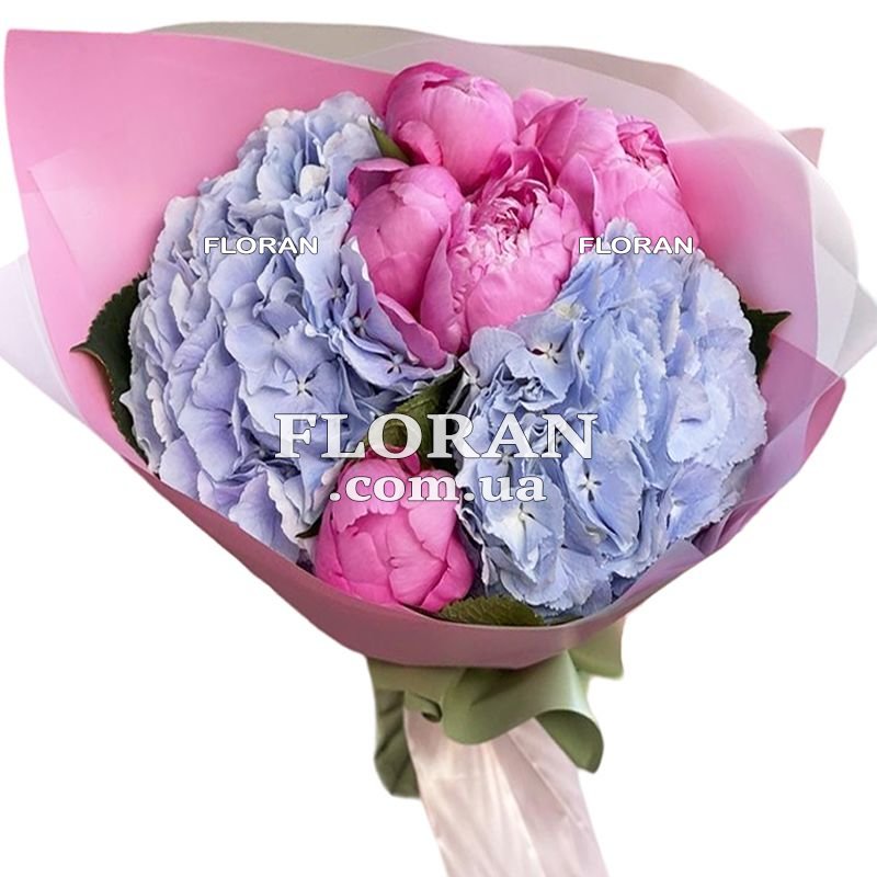 Небольшой букет с пионами - код товара FL-3071. В состав букета входят две голубые гортензии и пять розовых пионов, аккуратно упакованные, чтобы сохранить свежесть и великолепие цветов. Гортензии придают композиции объем и легкость, в то время как пышные розовые пионы добавляют романтики и изысканности. Такой букет станет прекрасным подарком для любого случая: будь то день рождения, юбилей, романтическое свидание или просто желание подарить радость близкому человеку. Нежные оттенки цветов и гармоничное сочетание пионов с гортензиями создают атмосферу весенней свежести и утонченной красоты, которая способна растопить любое сердце. Наша служба доставки цветов обеспечивает оперативную и бережную доставку по Киеву и другим городам Украины. Мы понимаем, как важно вовремя преподнести подарок, поэтому гарантируем, что ваш букет прибудет к получателю в безупречном состоянии, независимо от расстояния. Наши флористы с любовью создают каждую композицию, вкладывая в нее частичку своей души, чтобы ваш подарок был особенным и незабываемым. Закажите этот небольшой, но потрясающе красивый букет с пионами и гортензиями у нас, и вы сможете порадовать своих близких свежестью и красотой цветов, где бы они ни находились. Пусть ваш подарок станет символом внимания и любви, принося радость и счастье в дом ваших родных и друзей.