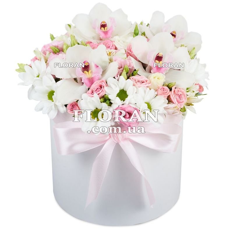 Нежная композиция из цветов в коробке - код товара FL-2934 - это восхитительное сочетание нежных и изысканных цветов, представленных в стильной коробке. В этой композиции вы найдете: 4 белые орхидеи: Орхидеи символизируют красоту, изящество и роскошь. Белый цвет орхидей усиливает чувство чистоты и благородства. 5 розовых кустовых роз: Кустовые розы с нежными оттенками розового придают букету романтичность и теплоту. Розы являются символом любви и страсти. 3 белые альстромерии: Белые альстромерии добавляют композиции свежести и легкости. Эти цветы ассоциируются с чистотой и новизной. 3 эустомы: Эустомы вносят в букет утонченность и грацию. Эти цветы также символизируют радость и процветание. 4 белые хризантемы: Белые хризантемы дополняют композицию своей красотой и символикой чистоты. Вместе эти цветы создают нежный и утонченный образ, подходящий для различных праздников, особых событий или просто для того, чтобы подарить радость близкому человеку. Наша служба доставки обеспечит, чтобы эта красивая композиция достигла своего адресата вовремя и в идеальном состоянии.