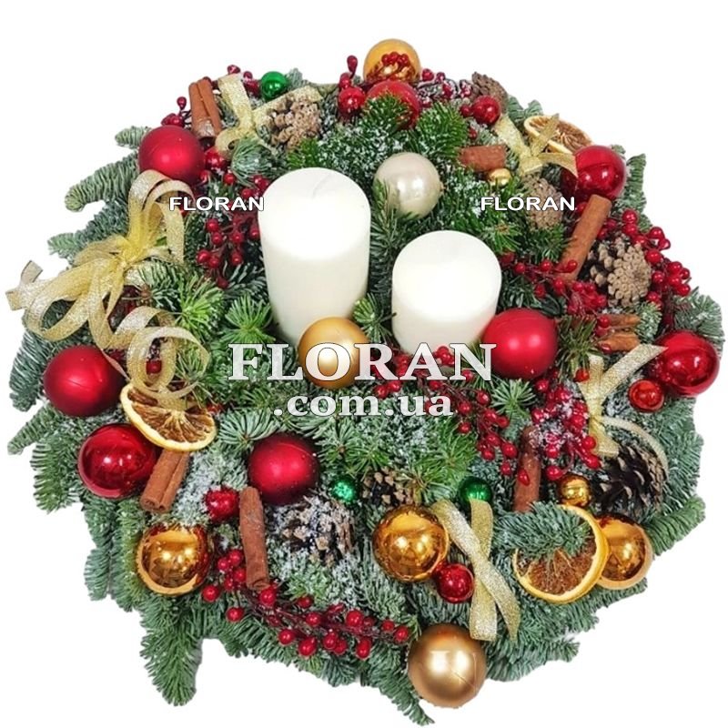 Спасибо спасибо магазину за доставку новогодней композиции! Она была прекрасно сложена из шаров и ели, и декорирована свечой, что помогло создать волшебное настроение в доме.