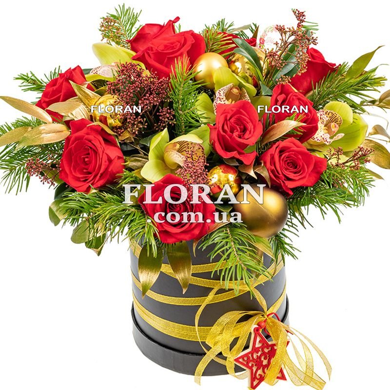 Новогодняя композиция из роз и орхидей - код товара FL-2183 - это настоящий символ роскоши и элегантности. В этой великолепной композиции вы найдете: 5 зеленых орхидей, которые символизируют роскошь, красоту и утонченность; 10 красных роз, которые придают композиции страстность и эмоциональность; 6 елочных шаров, чтобы внести атмосферу новогоднего веселья; Ветки ели или сосны, которые добавляют композиции нотку природной красоты; Коробку, в которой все элементы композиции сочетаются в единое целое. Эта композиция - идеальный способ подарить восторг и бурю эмоций вашим близким. Красные розы и зеленые орхидеи создают великолепное сочетание, которое символизирует страсть, любовь и жизненную энергию. Елочные шары добавляют в композицию атмосферу новогодних праздников и радости. И не стоит забывать о возможности отправить этот великолепный подарок вашим близким и друзьям, даже если они находятся в другом городе. Наши курьеры готовы доставить эту композицию в любой город, чтобы вы могли подарить радость и волшебство новогодних праздников вашим близким, даже на расстоянии. Этот подарок подходит для любого случая - для любимой, тещи, делового партнера или даже руководителя, как знак благодарности. Создайте незабываемые моменты и порадуйте своих близких этой великолепной композицией!