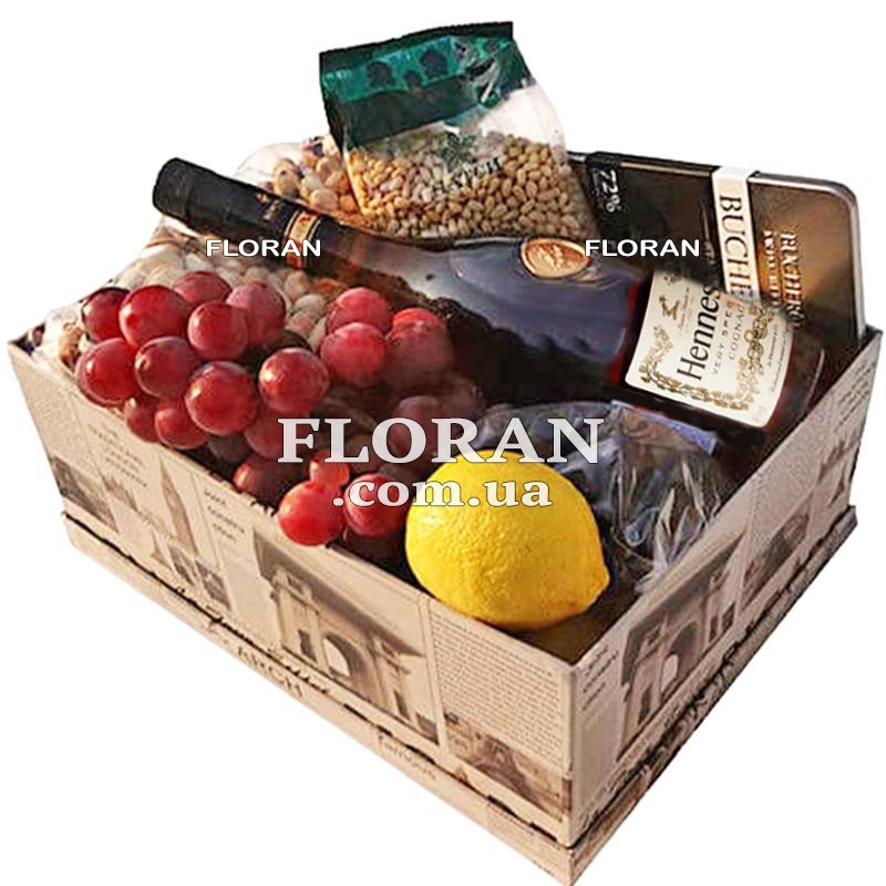 Подарочная коробка с коньяком - код товара FL-1941 - идеальный презент для ценителей изысканного вкуса и наслаждения. В этой коробке вы найдете разнообразные орехи - фисташки, кешью, арахис, семечки подсолнечные и фундук, которые будут радовать своими вкусовыми нотками. Финики и свежие виноградные гроздья добавят нотку сладости и свежести, идеально сочетаясь с ароматным коньяком. А для настоящих гурманов в коробке есть плитка шоколада - нежный десерт, который подчеркнет вкус коньяка и станет настоящим удовольствием. Самое главное - в коробке присутствует бутылка премиального коньяка Hennessy VS, который станет настоящим изюминкой подарка и подарит незабываемый вкусовой опыт. Эта подарочная коробка с коньяком - отличный выбор для особого мужчины в вашей жизни. Она подчеркнет его утонченный вкус и оценение прекрасного. И помните, что мы осуществляем доставку подарочной коробки с коньяком в любой город Украины. Так что, даже если вы находитесь далеко от своего получателя, мы с радостью доставим этот изысканный подарок прямо к нему дверям. Порадуйте особенного человека в своей жизни этой шикарной подарочной коробкой с коньяком - она станет настоящим символом внимания и заботы!