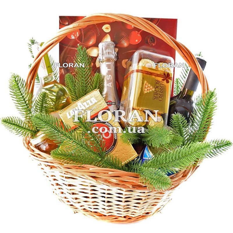 Подарочная корзина на новый год - код товара FL-604 - это идеальный подарок для тех, кто любит праздничную атмосферу и вкусные угощения. Получить сладкую новогоднюю корзину от человека, который далеко - это всегда приятно и неожиданно. Ведь, открыть корзину и увидеть там любимые лакомства, любимое вино и даже новогоднюю декорацию, как веточки ели или сосны, это просто замечательно. Такой подарок позволяет почувствовать заботу и внимание от близкого человека, который желает тебе только лучшего.