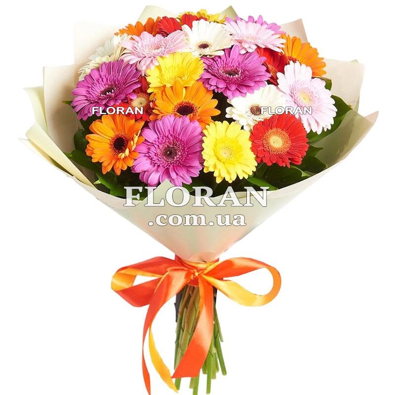 Разноцветные герберы в букете - код товара FL-1572 - это настоящая взрывная смесь цветов, которая привлечет внимание и подарит радость. Разноцветные герберы символизируют радость, энергию и жизнелюбие, идеально подходящие для передачи положительных эмоций и пожеланий. Каждая гербера в букете отличается своим оттенком и оттенком, создавая впечатление яркого и разнообразного цветового спектра. Красные герберы выражают страсть и силу, оранжевые - энергию и теплоту, желтые - солнечность и радость, розовые - нежность и романтику, фиолетовые - таинственность и магию. Сочетание всех этих цветов в одном букете создает впечатление живописной палитры, которая приносит радость и восторг. Букет из 21 разноцветной герберы является универсальным подарком, который подходит для любого случая. Он может быть прекрасным вариантом для дня рождения, юбилея, годовщины, праздника или просто для того, чтобы выразить свою благодарность, любовь или пожелания. Этот букет станет прекрасным способом поднять настроение и подарить улыбку на лице получателя. Упаковка букета также играет важную роль. Вы можете выбрать стильную и элегантную упаковку, которая подчеркнет красоту и яркость гербер. Это может быть бумажная обертка, цветочная сумка или прозрачная упаковка, позволяющая полностью насладиться видом цветов. Важно, чтобы упаковка дополнила образ букета и создала приятное впечатление с первого взгляда. Букет из 21 разноцветной герберы с упаковкой - это яркий и впечатляющий подарок, который не оставит равнодушным ни одного человека. Он позволяет выразить вашу радость, позитив и желание поделиться этими чувствами с близкими и дорогими людьми. Такой букет станет прекрасным символом вашей любви, восхищения и добрых пожеланий, которые вы хотите передать получателю.