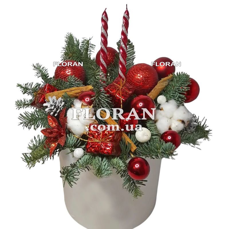 Рождественская композиция со свечами - код товара FL-2136 - это прекрасный способ создать в доме атмосферу праздника и уюта во время Рождества. В этой композиции вы найдете ароматные ветки ели или сосны, которые наполнят ваш дом праздничным ароматом и придадут интерьеру особый шарм. Одиннадцать красных елочных шариков различных размеров придают композиции настоящий рождественский вид. Красный цвет символизирует Рождество и радость этого светлого праздника. Две свечи добавляют мягкого освещения и создают атмосферу уюта. Зажженные свечи в Рождество всегда приносят ощущение тепла и внимания к деталям. Композиция также украшена новогодним декором, чтобы придать ей праздничный вид. Мы рады предложить вам доставку этой уникальной рождественской композиции собственными курьерами. Мы доставим ее прямо к вашему порогу, чтобы вы могли наслаждаться праздником в полной мере, не беспокоясь о том, как довезти этот чудесный элемент праздничного декора. Пусть Рождество будет ярким и уютным в вашем доме!