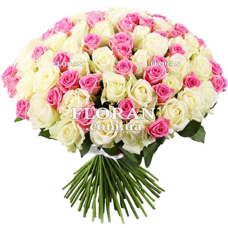 Шикарный букет роз для любимой - код товара FL-1456. Мы рады предложить вам шикарный букет из 101 белой и розовой розы. Этот букет станет идеальным подарком для вашей любимой, наполнив ее сердце радостью и восхищением. Комбинация белых и розовых роз символизирует чистоту, нежность и гармонию в отношениях. Белые розы олицетворяют чистоту и искренность чувств, а розовые розы добавляют нотку романтики и нежности. Вместе они создают впечатляющую и волнующую композицию, которая выразит вашу любовь и приверженность. Каждая роза была тщательно отобрана и аккуратно составлена в букет, чтобы создать эффектное и элегантное сочетание цветов. Нежные лепестки роз будут ласкать взгляд и приносить радость каждый день. Мы гарантируем высокое качество цветов и свежесть букета. Наши флористы с большим мастерством создадут этот букет, уделяя внимание каждой детали, чтобы подчеркуть красоту и изысканность роз. Вы можете быть уверены, что ваша любимая получит самый восхитительный букет. Чтобы заказать этот шикарный букет из 101 белой и розовой розы, вы можете связаться с нами через наш сайт или обратиться к нашим менеджерам в Viber, WhatsApp, Telegram. Мы предлагаем доставку букета прямо к дверям вашей любимой, чтобы сделать этот момент еще более особенным и романтичным.