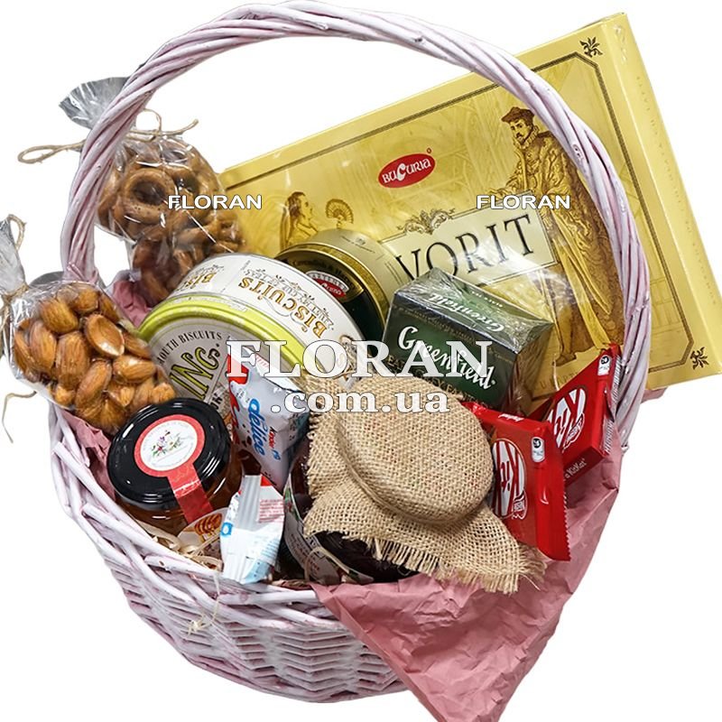 Сладости в корзине - код товара FL-2054. В этой изысканной корзине вас ждет настоящее праздничное угощение. Она наполнена разнообразными сладостями и деликатесами, которые подарят яркие вкусовые ощущения и радость каждому, кто ее получит. Коробка конфет - это настоящий кладезь вкусов разных форм и начинок. От нежных карамелей до шоколадных бонбонов - здесь найдется что-то для каждого сладкоежки. Печенье - это нежное и хрустящее удовольствие. Оно идеально подходит для чашки ароматного чая. Листовой чай - позволяет наслаждаться моментами уюта и расслабления. Разнообразные сорта чая в корзине угодят ценителям разных вкусов. Мед - это натуральное украшение этой корзины. Он не только сладок и полезен, но и символизирует пожелания сладкой и счастливой жизни. Сушка - это легкое и вкусное дополнение для чая. Она создает неповторимую атмосферу утренней или вечерней чашки чая. Миндаль - это источник здоровых жиров и белка. Он дарит энергию и хорошее настроение. Варенье - это нежность и аромат летнего солнца. Оно прекрасно сочетается с тостами или выпечкой. Шоколадные батончики и Kinder Delice - это настоящее наслаждение для гурманов. Их нежные начинки и шоколадная оболочка расслабляют и радуют вкусовые рецепторы. Эта корзина - отличный подарок для тех, кто ценит изысканные вкусы и хочет насладиться моментами сладкой радости. Вы можете заказать ее для ваших близких или друзей и подарить им незабываемое удовольствие.