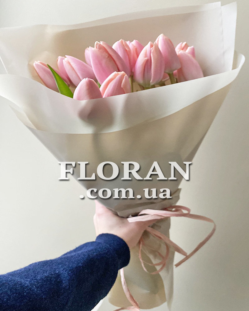 17 розовых тюльпанов, упаковка