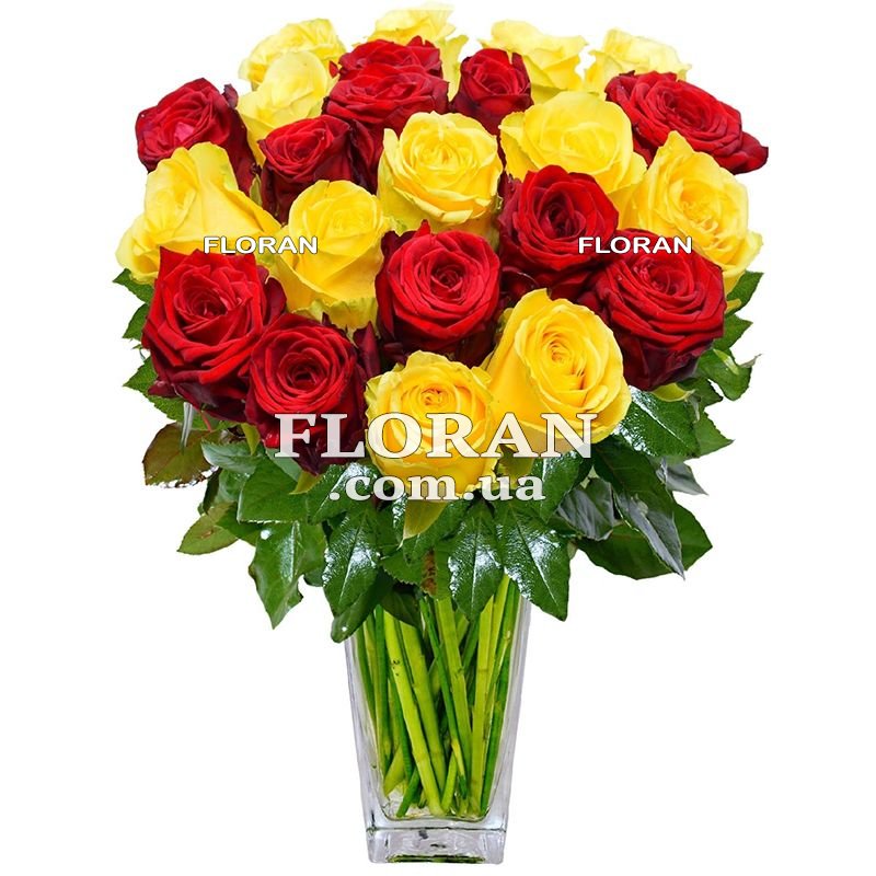Желтые и красные розы букет - код товара FL-2702 - это чудесный выбор для тех, кто хочет передать свои чувства ярко и выразительно. Красные розы обычно ассоциируются с любовью и страстью, в то время как желтые розы символизируют счастье, радость и дружбу. Комбинированный букет этих двух цветов может иметь различные значения, исходя из контекста и ваших намерений. Этот букет может быть прекрасным подарком для вашей возлюбленной в День Святого Валентина или в день рождения. Красные розы выразят вашу страсть и глубокие чувства, а желтые розы добавят нотку радости и дружбы. Также букет из желтых и красных роз подходит для дарения важным людям в вашей жизни, таким как друзья и семья. Он может быть знаком признательности, счастья и пожеланием яркой и радостной жизни. В зависимости от вашего пожелания, букет может быть оформлен лентой или в упаковке, чтобы подчеркнуть его красоту. Этот букет прекрасно дополняет разные интерьеры и создает атмосферу тепла и уюта в любом помещении. Его сочетание красных и желтых роз делает его универсальным и позволяет использовать его в различных ситуациях.