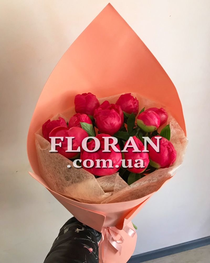11 півоній - код товару FL-353. Букет з 11 місцевих півоній рожевого кольору - це справжня краса природи, яка заповнює весь простір своїм солодким ароматом та ніжністю. Кожна квітка, наче ніжна шовкова пелюстка, привертає погляд своєю красою та вишуканістю. Півонії - це квіти, які завжди в моді, їх краса не схильна до часу і модних тенденцій. Рожевий колір півонії символізує любов, ніжність та жіночність. Цей букет стане справжнім подарунком для коханої жінки, яка цінує красу, елегантність та витонченість. Він підійде для будь-якого випадку - від дня народження до річниці весілля, і запам'ятається довгі роки, залишаючи яскраві спогади про чудовий момент у житті.