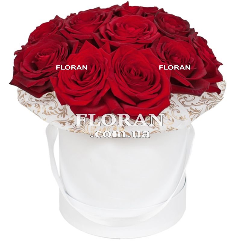 11 троянд у коробці - код товару FL-179. Усередині коробки знаходяться 11 червоних троянд, які символізують пристрасть і любов. Троянди в коробці - це не тільки красивий, але і зручний варіант подарунка, оскільки квіти вже знаходяться в спеціальній упаковці і не вимагають додаткової обробки. Червоного кольору троянди - це класика, яка ніколи не вийде з моди. Букет з 11 червоних троянд у капелюшній коробці - чудовий подарунок для тих, кого ви цінуєте і любите. Цей букет символізує пристрасть і любов, і його можна подарувати в найрізноманітніші моменти життя. До того ж, коробка з українськими трояндами - це гарантія якості та свіжості квітів. Подаруйте цю коробку з трояндами своїй коханій жінці або просто близькій людині, і ви побачите, як вони зрадіють такому прекрасному подарунку.