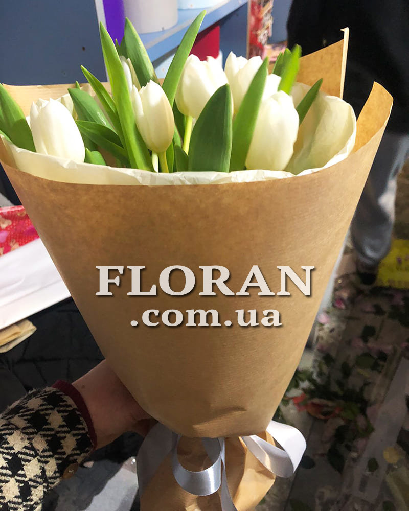 11 тюльпанів - код товару FL-2323 - це чудовий спосіб висловити вдячність та вдячність. Білі тюльпани символізують чистоту, ніжність та повагу. Вони добре підходять для того, щоб показати свою вдячність, підтримку або просто передати знак уваги. Цей невеликий букет з 11 білими тюльпанами буде чудовим подарунком для подяки друзям, колегам, рідним або тим, хто заслуговує на особливу увагу. Він також підходить для різних випадків, від ювілеїв до вияву підтримки у важкі моменти. Для замовлення цього букета з доставкою зверніться до нашого магазину. Ми гарантуємо своєчасну доставку та якість наших квітів, щоб ваш подарунок був щирим та приніс радість тому, кому ви його адресуєте.