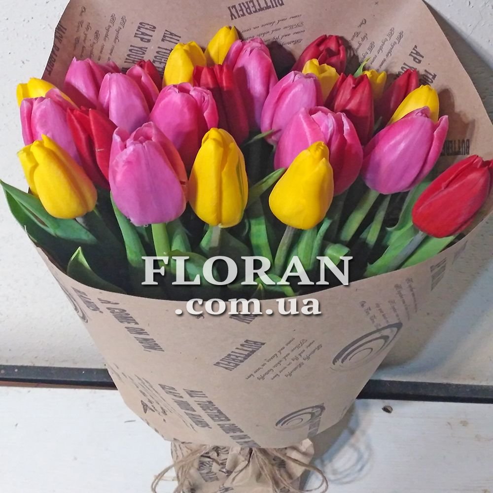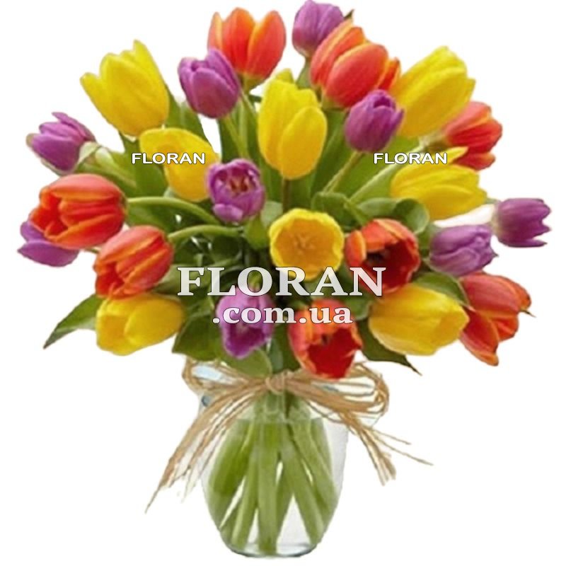 25 тюльпанів – код товару FL-2385 – це чудовий подарунок, який символізує різноманітність почуттів та емоцій. Кожен колір тюльпана може нести в собі свій сенс, що робить цей букет ще дивовижнішим. Тюльпани - квіти ніжності та краси. Вони можуть бути подарунком для багатьох випадків, будь то день народження, ювілей, весілля або просто бажання порадувати близьку людину. Букет із 25 тюльпанів підкреслить вашу турботу та увагу до одержувача. У цьому букеті різнокольорові тюльпани можуть символізувати різні аспекти відносин. Наприклад, червоні тюльпани виражають пристрасть і кохання, жовті – дружбу та радість, рожеві – ніжність та повага. Поєднання всіх цих кольорів робить букет універсальним і придатним для багатьох випадків. При замовленні у нашому магазині, ви можете бути впевнені у високій якості та свіжості квітів. Ми дбайливо упаковуємо букети, щоб вони радували око свіжістю та красою. Що стосується доставки, ми надаємо різні варіанти, щоб зробити замовлення зручним для вас. Ми доставляємо квіти вчасно, щоб кожен одержувач отримав свій чудовий букет із 25 різнокольорових тюльпанів у відмінному стані. Зробіть день особливим для того, кого ви хочете порадувати з нашими різнокольоровими тюльпанами. Цей букет принесе радість та свіжість у життя вашої близької людини.