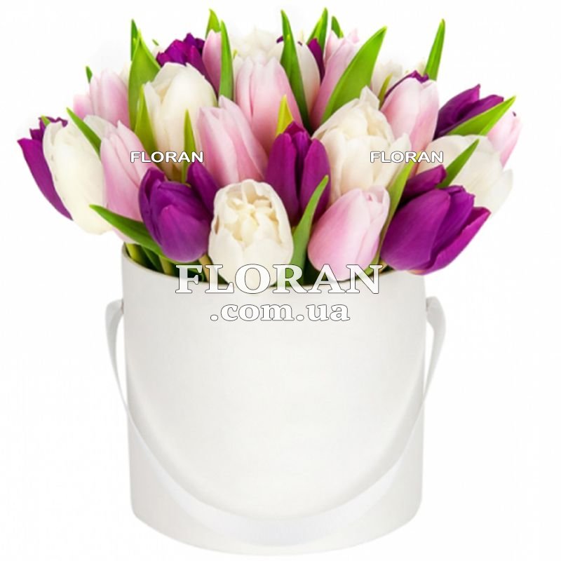 25 тюльпанів у коробці - код товару FL-2867 - це неймовірно красивий і стильний подарунок, який може стати проявом ваших найкращих почуттів. Цей букет чудово підходить для різних випадків і заходів, будь то романтичне побачення, привітання зі святом або вираження почуттів близькій людині. Різнокольорові тюльпани створюють яскраву та радісну композицію. Кожна квітка несе свій власний зміст, що надає подарунку особливої глибини. Червоні тюльпани можуть символізувати пристрасть та любов, жовті - сонячне щастя та радість, а фіолетові - загадку та чарівну таємницю. Коробка, в якій представлені ці тюльпани, додає оригінальності та зручності у догляді за квітами. Завдяки професійній упаковці та якісній доставці, квіти збережуть свіжість та красу до того моменту, як потраплять до рук щасливого отримувача. Подаруйте цей ніжний та стильний букет тюльпанів, щоб висловити своє кохання, подяку або просто подарувати радість близькій людині.