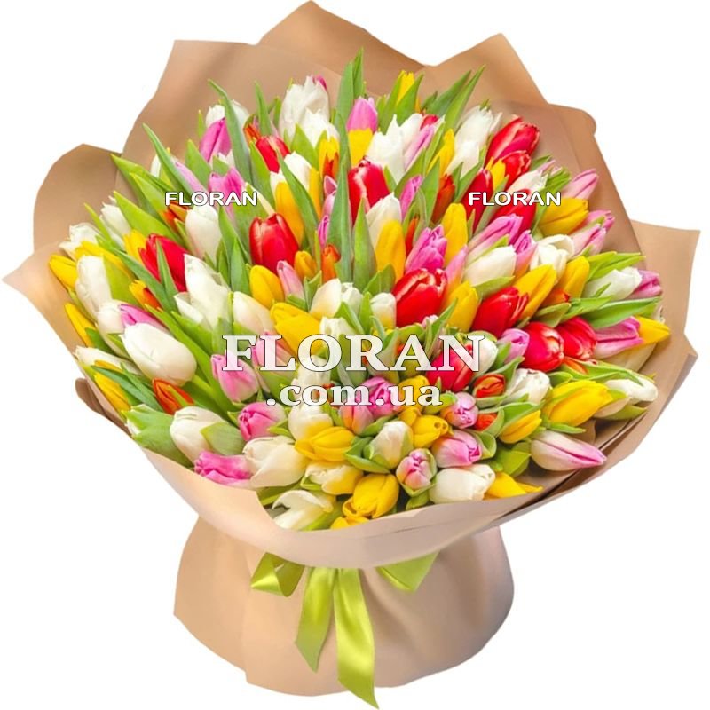 251 тюльпан - код товару FL-2414 - це справді чудовий і значний подарунок. Тюльпани вважаються одними з найкрасивіших і витончених квітів, і така велика Кількість квітів в одному букеті може символізувати ваше безмірне кохання, повагу та вдячність. Такий букет стане чудовим подарунком на особливі події та свята, такі як ювілей, весілля, річниця чи інші важливі дати. Він також може бути чудовим проявом вашої глибокої прихильності та поваги до одержувача букета. Упаковка букета допоможе зберегти свіжість квітів, а послуги доставки гарантують, що ваш подарунок дійде до адресата вчасно та в ідеальному стані. Букет із 251 тюльпана - це мальовниче творіння, яке обов'язково принесе масу позитивних емоцій та радості тому, хто його отримає.