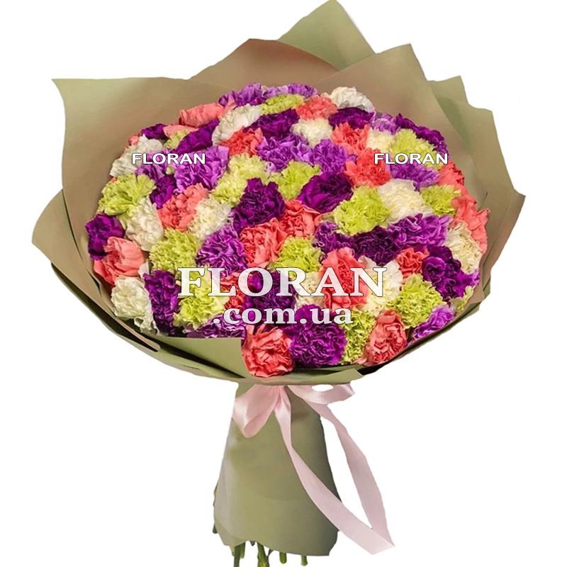 51 гвоздика - код товару FL-1665 - це яскравий та вражаючий прояв кохання, радості та пожвавлення. Кожна гвоздика в цьому букеті має свій унікальний колір, створюючи яскраву і різноманітну композицію. Різнокольорові гвоздики символізують різнобічні емоції та почуття. Вони можуть виражати радість, любов, подяку, повагу чи дружбу. Кожен колір гвоздики має своє особливе значення, і разом вони створюють вражаючу гаму фарб та емоцій. Упаковка цього букета забезпечує його збереження та надає завершеності образу. Ви можете вибрати упаковку відповідно до ваших уподобань - від класичної квіткової обгортки до стильної коробки або паперового пакету. Кожна деталь важлива, щоб підкреслити красу та яскравість різнокольорових гвоздик. Ми гарантуємо високу якість кожної гвоздики та свіжість квітів. Наш магазин пропонує доставку букета з 51 різнокольорової гвоздики до будь-якого міста України. Ми дбаємо про те, щоб ваш подарунок був доставлений вчасно та супроводжувався побажаннями та почуттями, які ви хочете передати. Замовте цей яскравий та різнокольоровий букет із 51 гвоздики та порадуйте своїх близьких, друзів чи колег. Він стане символом яскравих емоцій та свята, яке викликатиме посмішку та захоплення в одержувача.