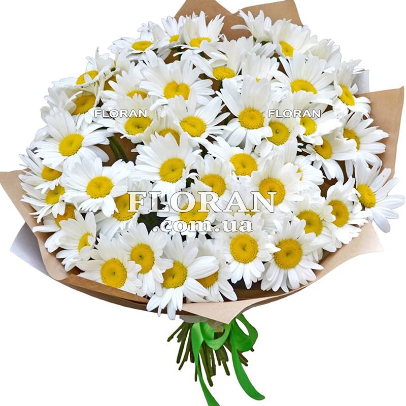 51 ромашка - код товару FL-336. Букет із 51 великої ромашки, також відомої як садова ромашка, це яскравий та барвистий подарунок, який порадує будь-яку людину. Ромашки - символ літа та сонця, вони надають настрою та радості. Великий букет з 51 ромашки стане чудовою прикрасою інтер'єру та приверне увагу до своєї краси та вишуканості. Ви можете замовити такий букет для своїх близьких та друзів, щоб подарувати їм частинку літа та тепла.