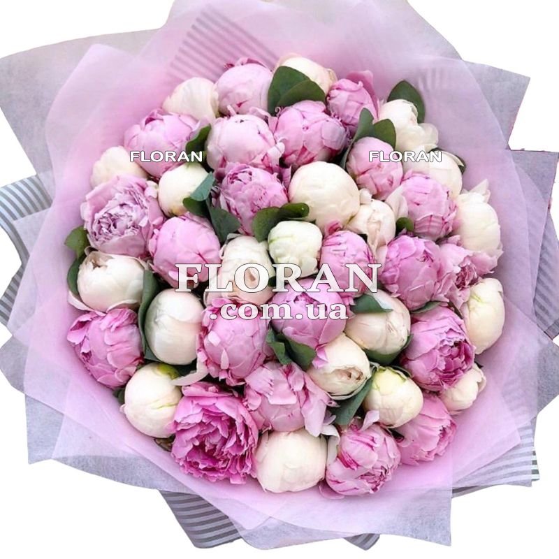 51 рожева і біла півонія - код товару FL-3058. Імпозантний букет з 51 рожевої і білої імпортної півонії - це як чарівна хмара півоній, здатна вразити і здивувати будь-яку дівчину. Кожен бутон цих чудових квітів несе в собі неповторну красу і ніжність, створюючи атмосферу захоплення і романтики. Такий букет стане не просто подарунком, а справжнім символом вашої відданості та уваги. Доставка цього чудового букета нашими кур'єрами забезпечить максимальний комфорт і зручність, роблячи можливим зробити сюрприз навіть на відстані. При отриманні такого вишуканого подарунка дівчина обов'язково відчує себе особливою та унікальною, адже кожна півонія в цьому букеті - це прояв вашої щирої турботи і любові.
