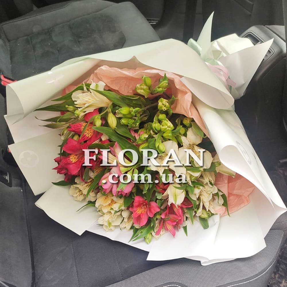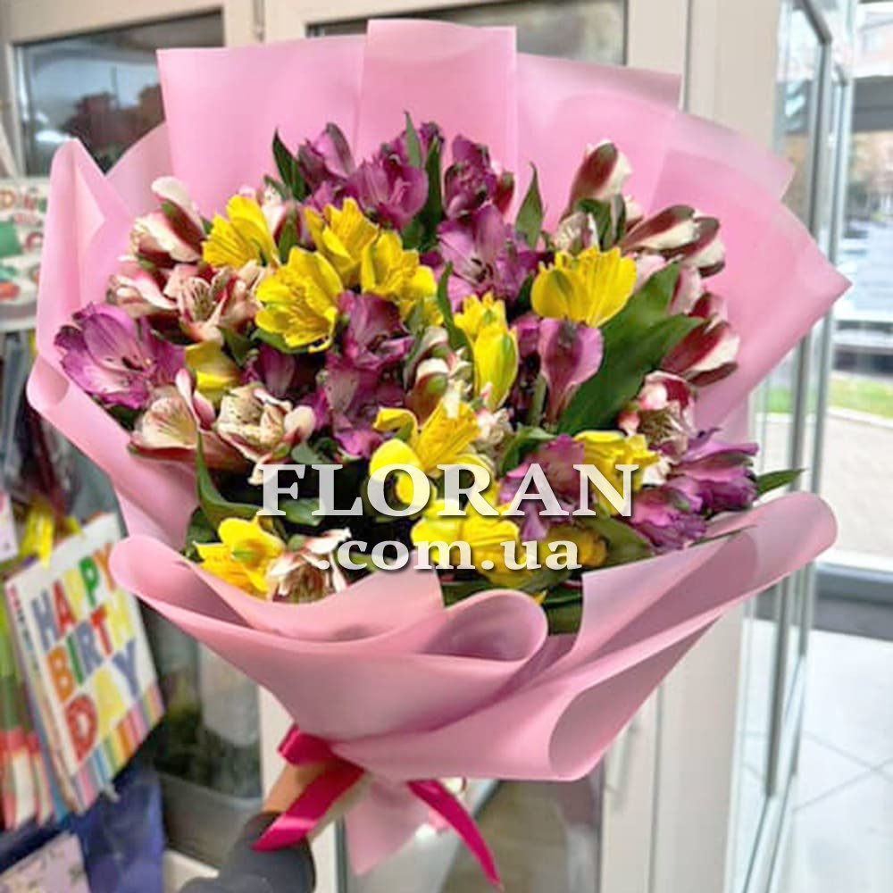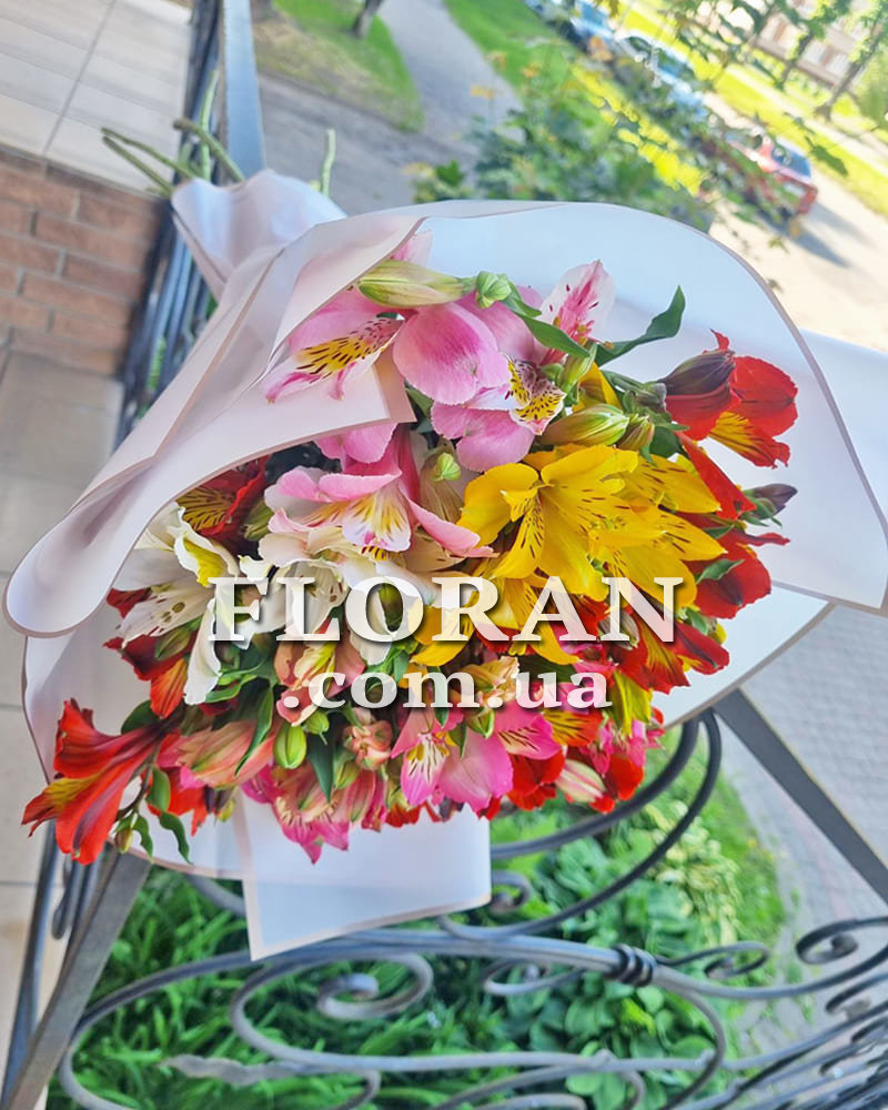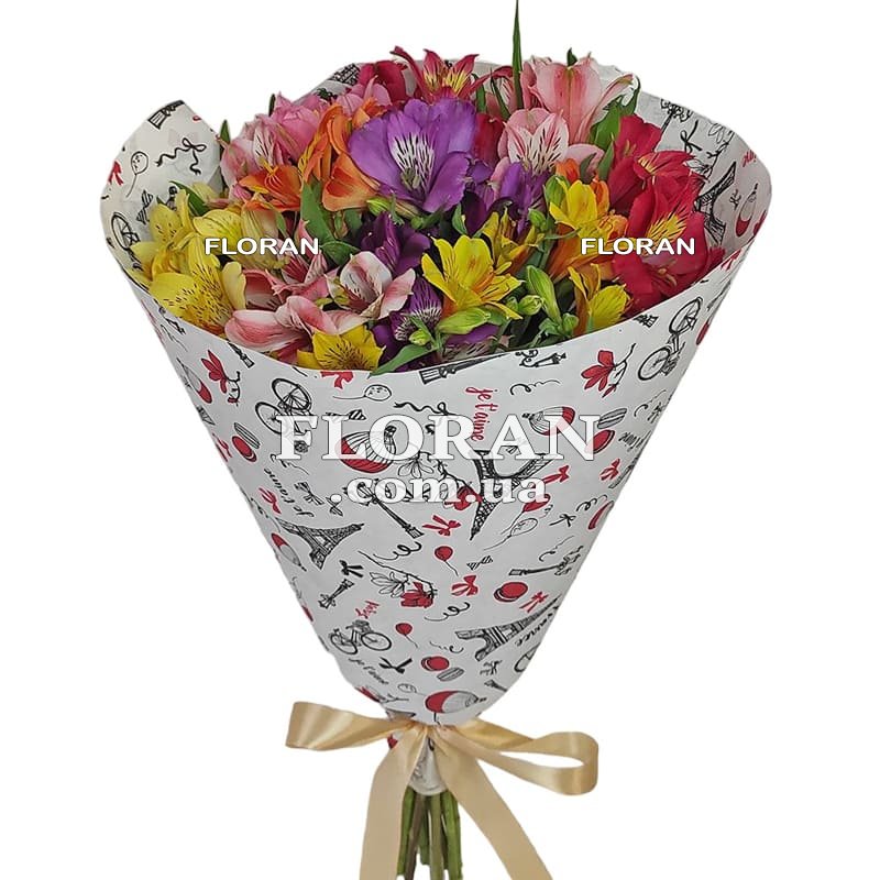 Альстромерія 11 шт. - Код товару FL-836. Букет з 11 різнокольорових альстромерій, упакований у гарний папір – чудовий подарунок для будь-якого випадку. Альстромерії символізують дружбу, повагу та прихильність, що робить цей букет ідеальним для друзів чи близьких родичів. Кожна альстромерія має унікальний відтінок, що додає у букет ще більше фарб та яскравості. Упаковка в папір робить букет ще більш елегантним та доглянутим. Різнокольоровий букет з альстромерій стане чудовим подарунком для жінки чи дівчини, яка любить яскраві та барвисті квіти. Не забудьте додати до букета листівку з побажаннями, щоб подарунок став ще більш значущим. Замовте альстромерію 11 шт. з доставкою прямо зараз і порадуйте своїх близьких!