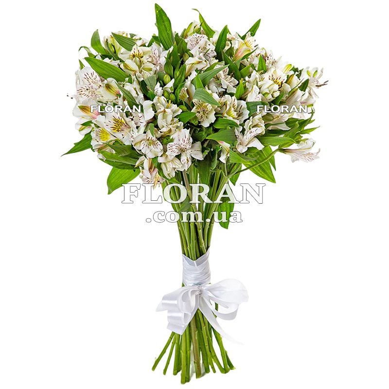 Альстромерія біла - код товару FL-303. Біла альстромерія - це символ чистоти, невинності та щирості. Букет з білих альстромерій - це вишуканий і елегантний подарунок для будь-якого випадку. Ніжні квіти мають дуже витончений вигляд, ідеально підходять для створення романтичних композицій або для урочистих подій. Білі альстромерії також можуть використовуватися у весільних букетах або квіткових арках, щоб створити вражаючий і чистий дизайн. Наш інтернет-магазин Floran пропонує купити букет з білих альстромерій з доставкою по всій країні. Ми використовуємо тільки свіжі квіти високої якості, щоб гарантувати, що ваш подарунок буде радувати довгий час.