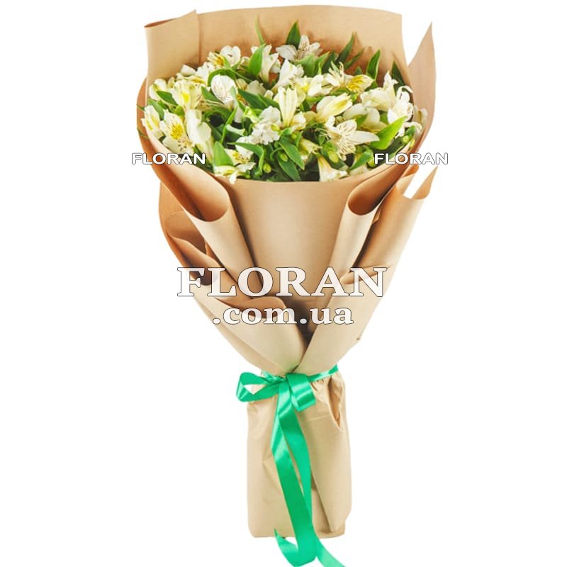 Альстромерія біла букет - код товару FL-839. Ці прекрасні квіти відомі своєю витонченістю та ніжністю. Букет з альстромерій – це завжди чудовий подарунок для будь-якого випадку. 11 білих альстромерій - це ідеальний вибір для весільного букета або подарунка на виписку з пологового будинку. Альстромерії білого кольору - це символ чистоти та невинності, тому вони такі популярні на весіллях. Ці квіти також підходять для створення букетів на випускний або день народження. Якщо ви хочете порадувати свою кохану, то букет із альстромерій стане чудовим вибором. Альстромерія - це квіти, які будуть радувати своєю красою довгий час. Подаруйте букет альстромерій білого кольору і ви точно не помилитеся!