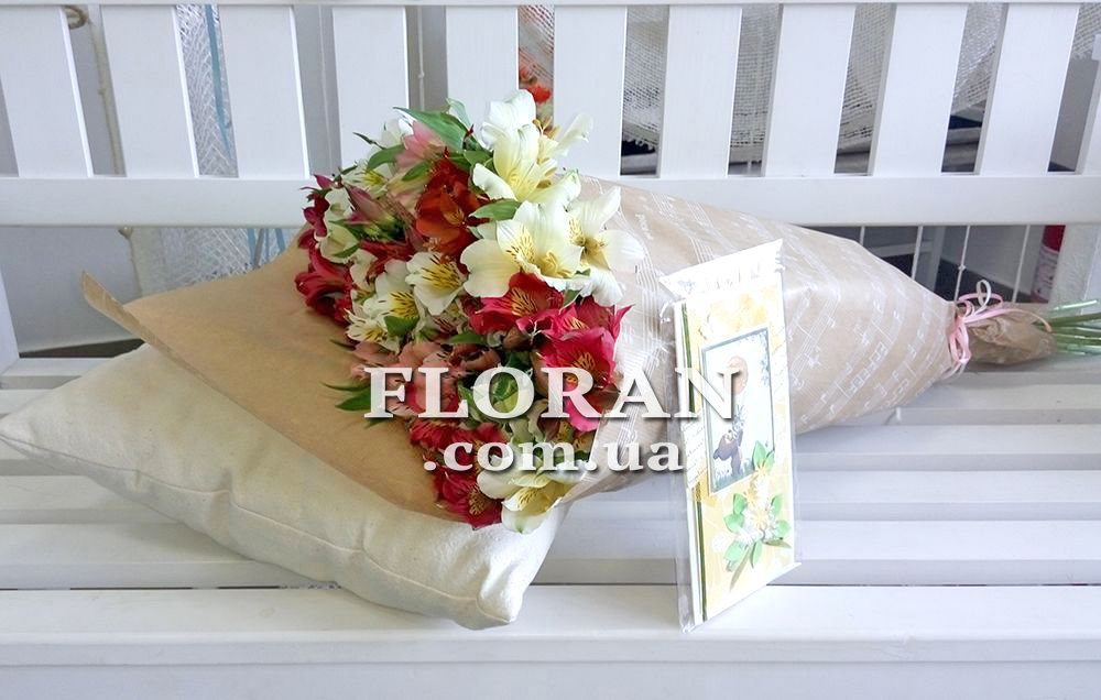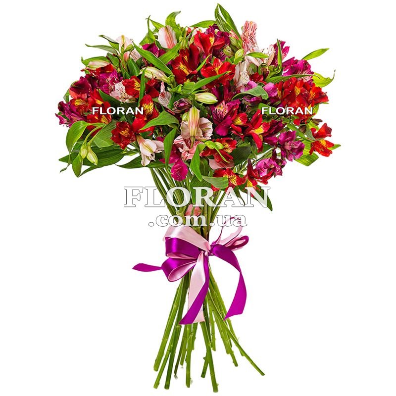 Альстромерія букет - код товару FL-302. Цей букет з альстромерій порадує своєю красою і різноманітністю кольорів. У ньому зібрано 21 різнобарвна альстромерія, яка створює яскраве і насичене враження. З альстромеріями можна створити ніжний і романтичний букет, а можна зробити яскравий і барвистий подарунок. Різнобарвний букет з альстромерій підійде для будь-якого випадку - від дня народження до весілля. Альстромерії - це квіти, які символізують дружбу, повагу і відданість. Вони також є символом процвітання і процвітання. Якщо ви хочете порадувати своїх близьких або друзів, то 21 альстромерія - відмінний вибір. Цей букет альстромерій стане прекрасним подарунком для будь-якої людини, яка цінує красу та елегантність.