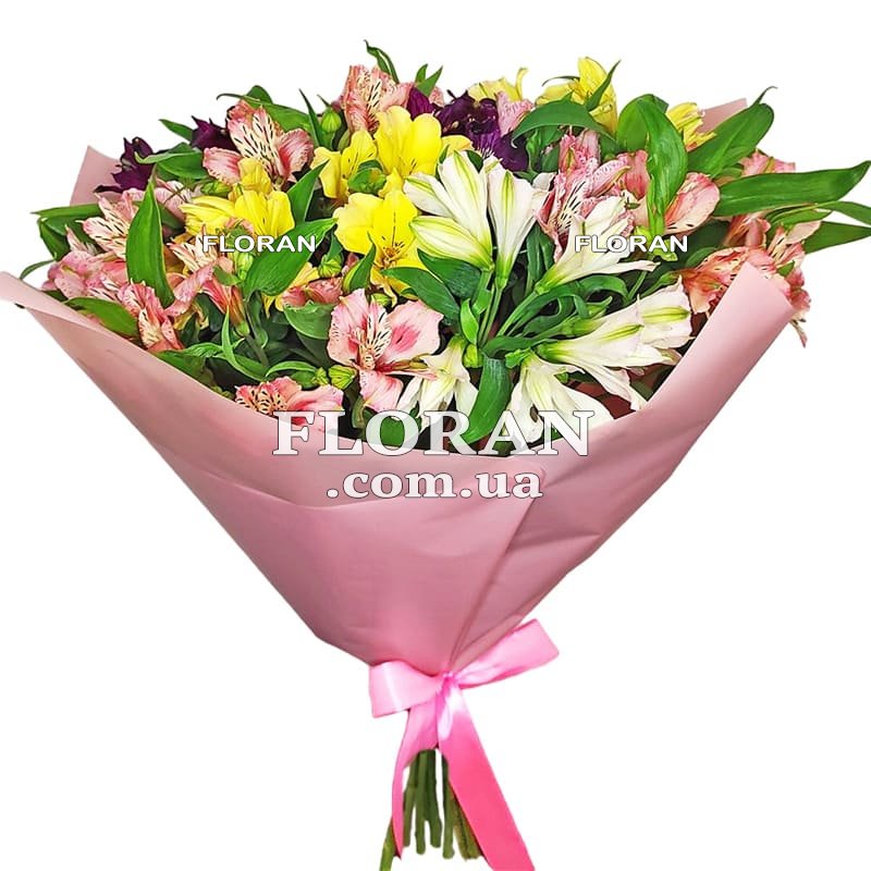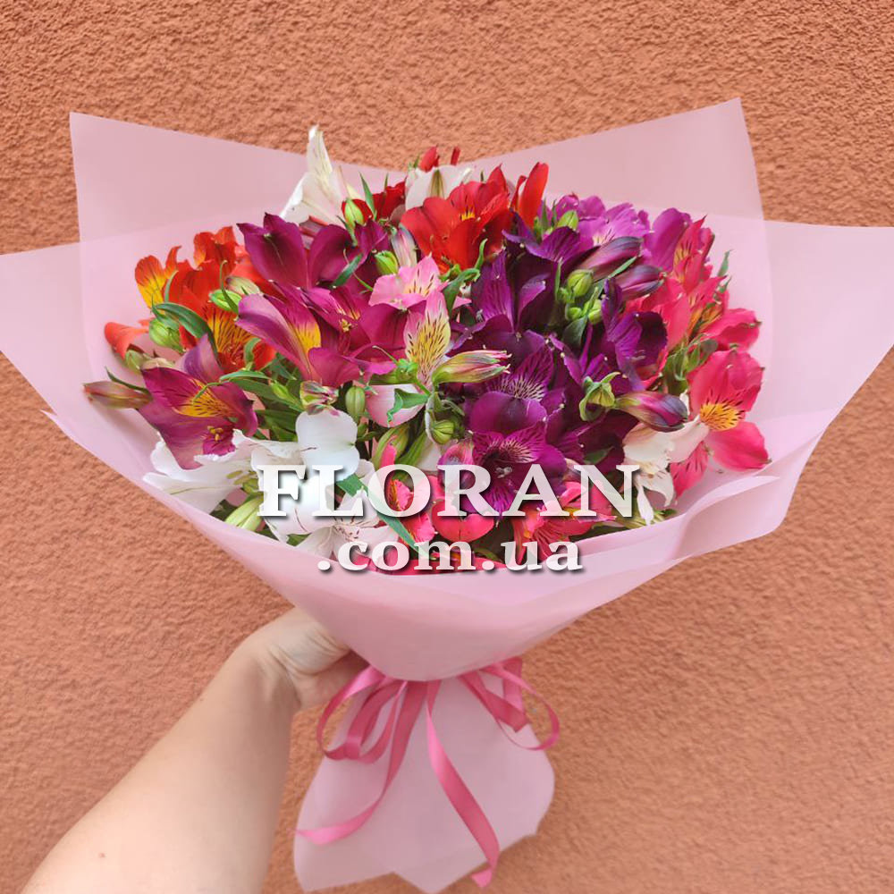 Альстромерія квітка букет - код товару FL-805. Якщо ви шукаєте яскравий і барвистий букет, то букет з альстромерій - це те, що вам потрібно. Наш магазин пропонує 13 різнокольорових альстромерій, які створять неповторний образ і подарують масу позитивних емоцій. З альстромеріями можна створити букети різних форм і розмірів, а також використовувати їх як доповнення до інших квітів. Різнобарвний букет з альстромерій стане чудовим подарунком для будь-якого випадку, чи то день народження, чи то ювілей, чи то просто бажання порадувати близьку людину. Альстромерії - це квіти, які символізують дружбу, повагу і відданість, тому вони також підходять для подарунка друзям і колегам. Якщо ви хочете додати трохи яскравості і фарб у своє життя, то різнокольоровий букет з альстромерій - це саме те, що вам потрібно.