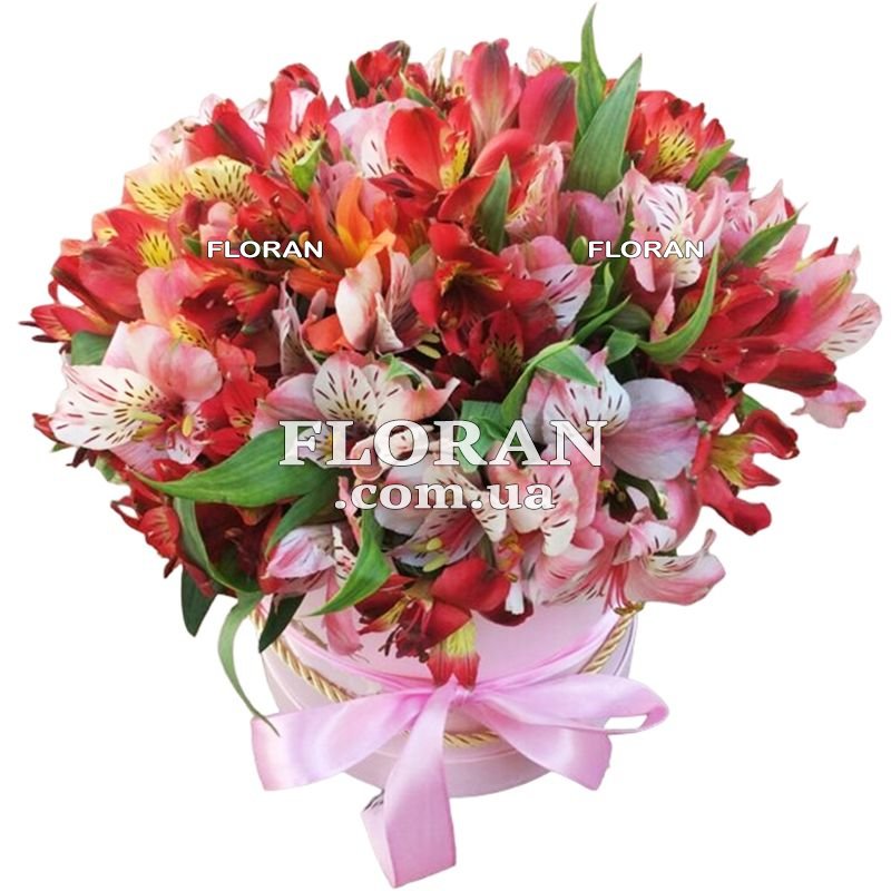 Альстромерія в капелюшній коробці - код товару FL-2940 - це казкова симфонія ніжності та краси. Ці витончені квіти, також відомі як перуанські лілії, привносять у букет свою унікальну елегантність та різноманітність кольорів. Завдяки своїм численним сортам, альстромерії можуть вражати різноманітністю відтінків, від ніжно-рожевих до червоних, від кремових до фіолетових. Альстромерії в коробці стають справжньою окрасою та символом вишуканості. Кожна квітка виглядає як таємничий малюнок, що розкривається, розквітаючи в унікальний букет. Їхні довгі гілочки з парасольками дрібних квіток створюють враження невагомої та повітряної композиції. Комбінація альстромерій в коробці надає букету особливого шарму і робить його відмінним вибором для подарунків з нагоди різних свят, романтичних випадків або просто як вираження теплих почуттів до близьких людей. Цей стильний та елегантний варіант квіткового дизайну залишить незабутні враження та зробить будь-яку подію особливою.